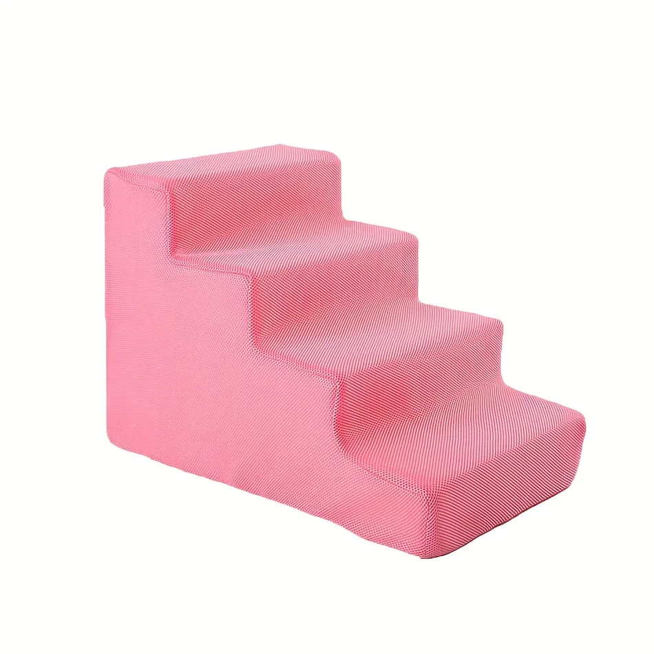 4-Step Pet Stairs for Small & Medium Dogs - Non-Slip Foam Ramp with Removable Cover, Ergonomic Pet Ladder for High Beds