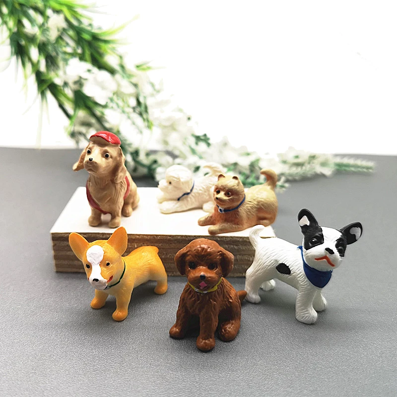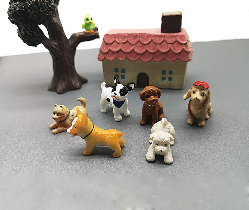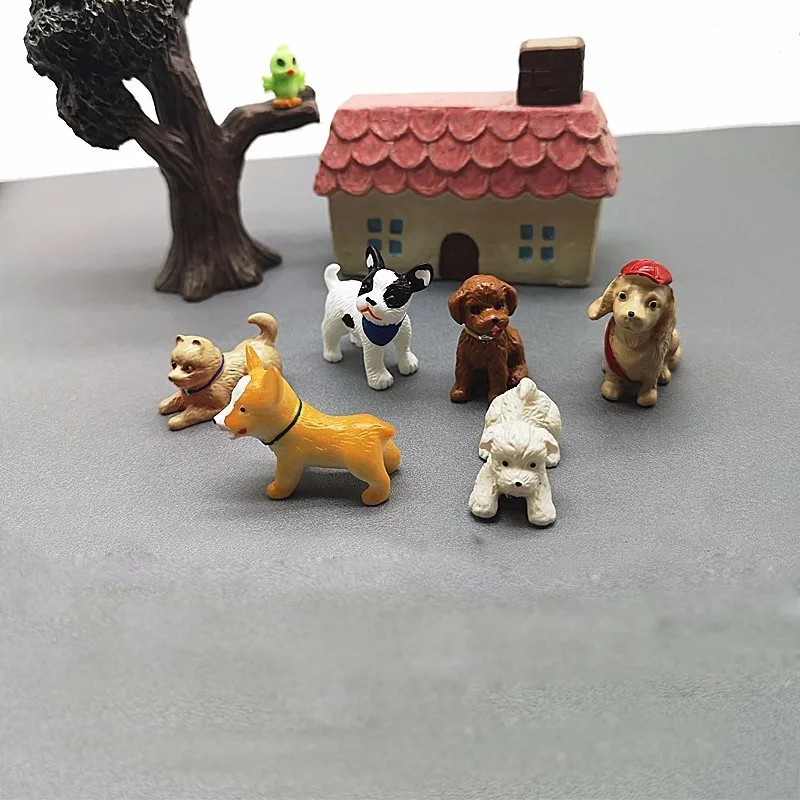 6 Pcs Dog Animal Set Miniature Dollhouse Ornament Mini Toy Home Craft Fairy Bonsai Decor Cake Decoration DIY Accessories