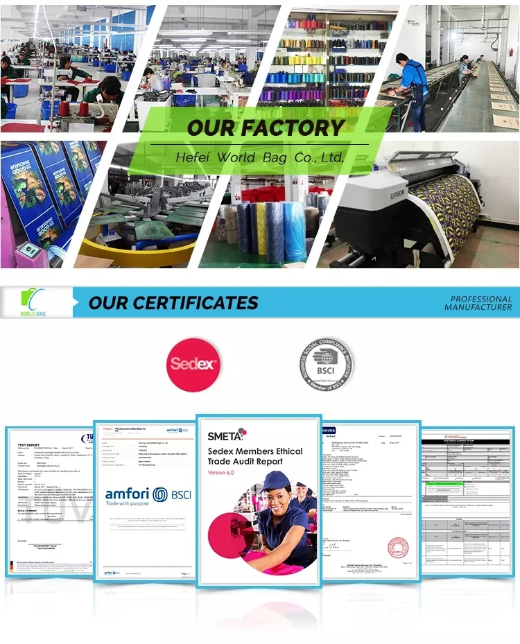 A: Attaching great importance to quality controlling , we check every step from raw material to the finished bags one by one to