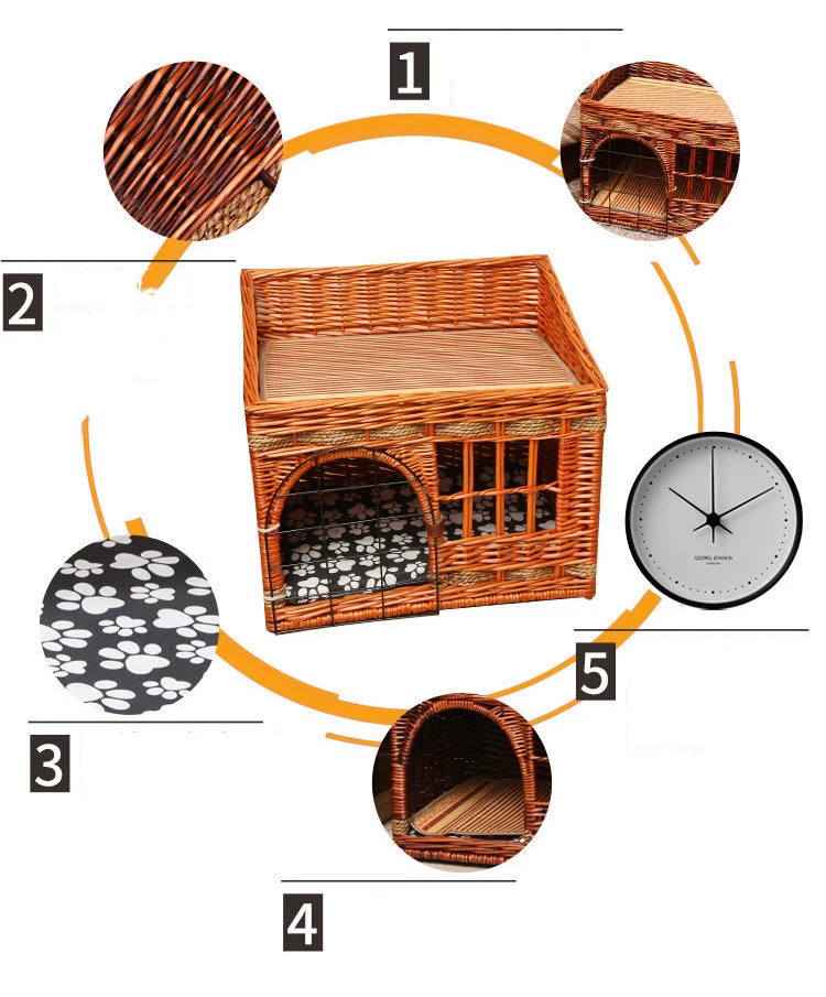 Cat House For Indoor Cats Hand-woven Rattan Designed For Pets Cat Beds With Cozy Soft Cotton Washable Mat