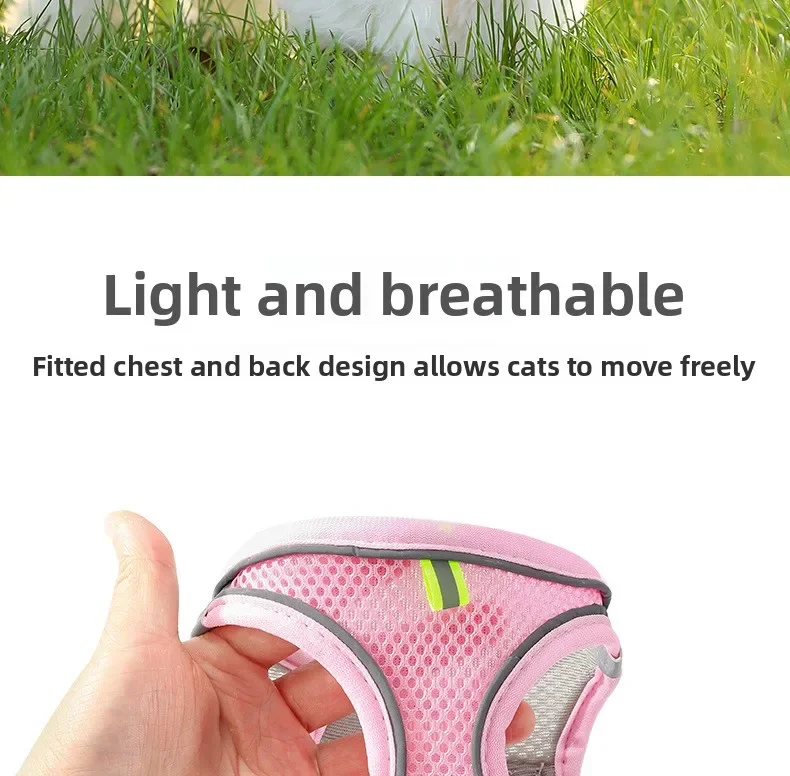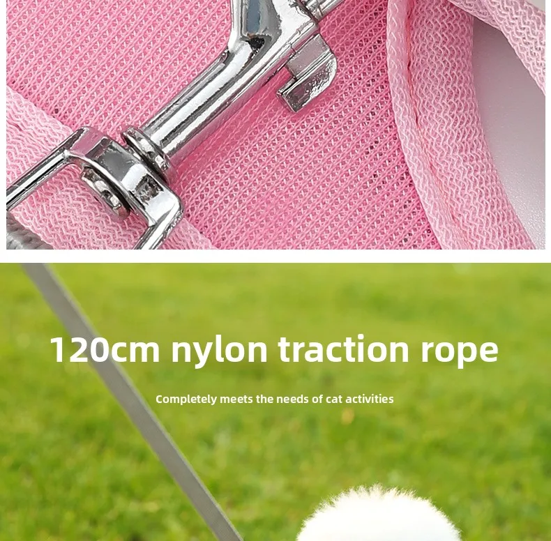 2.Soft Mesh Cat Vest Harness and Nylon Leash Set for Walking Escape Proof No Pull & No Choke Design.The harness will make your kitty safe and comfortable. It is best for walking, running,playing or hiking. This safety harness leash set allows you to walk your pet.