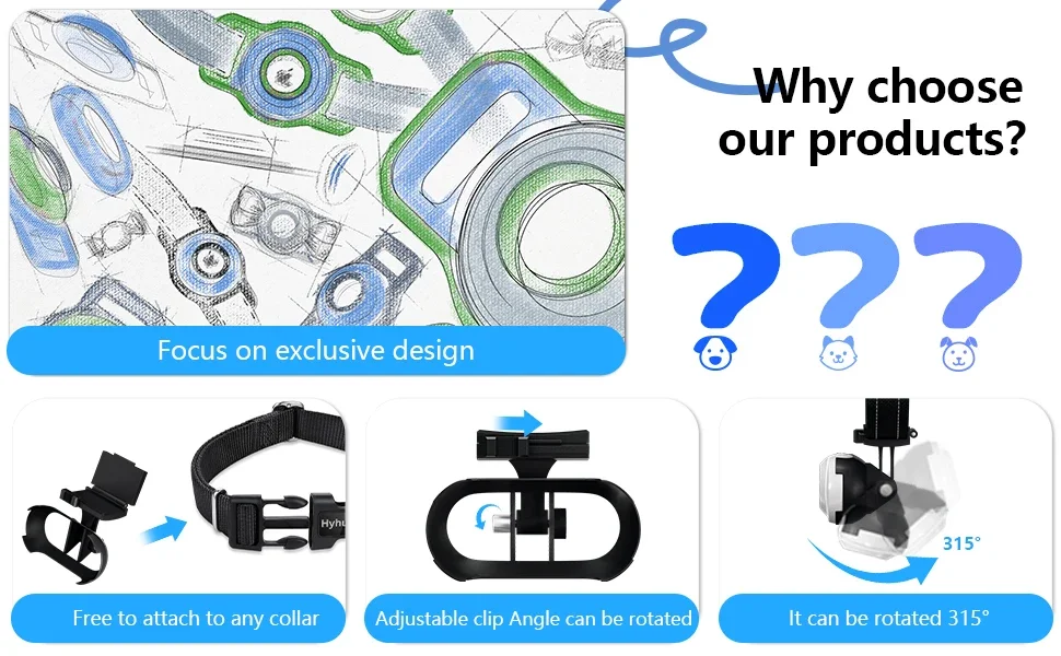 If our collar is not suitable, our accessories also contain clips to help secure the camera to your own pet's collar.