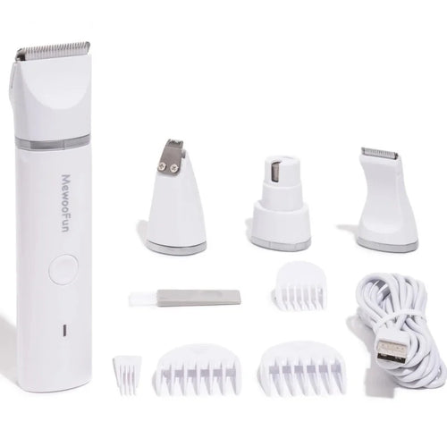 Mewoofun 4 in 1 Pet Electric Hair Trimmer with 4 Blades Grooming Clipper Nail Grinder Professional Recharge Haircut For Dogs Cat