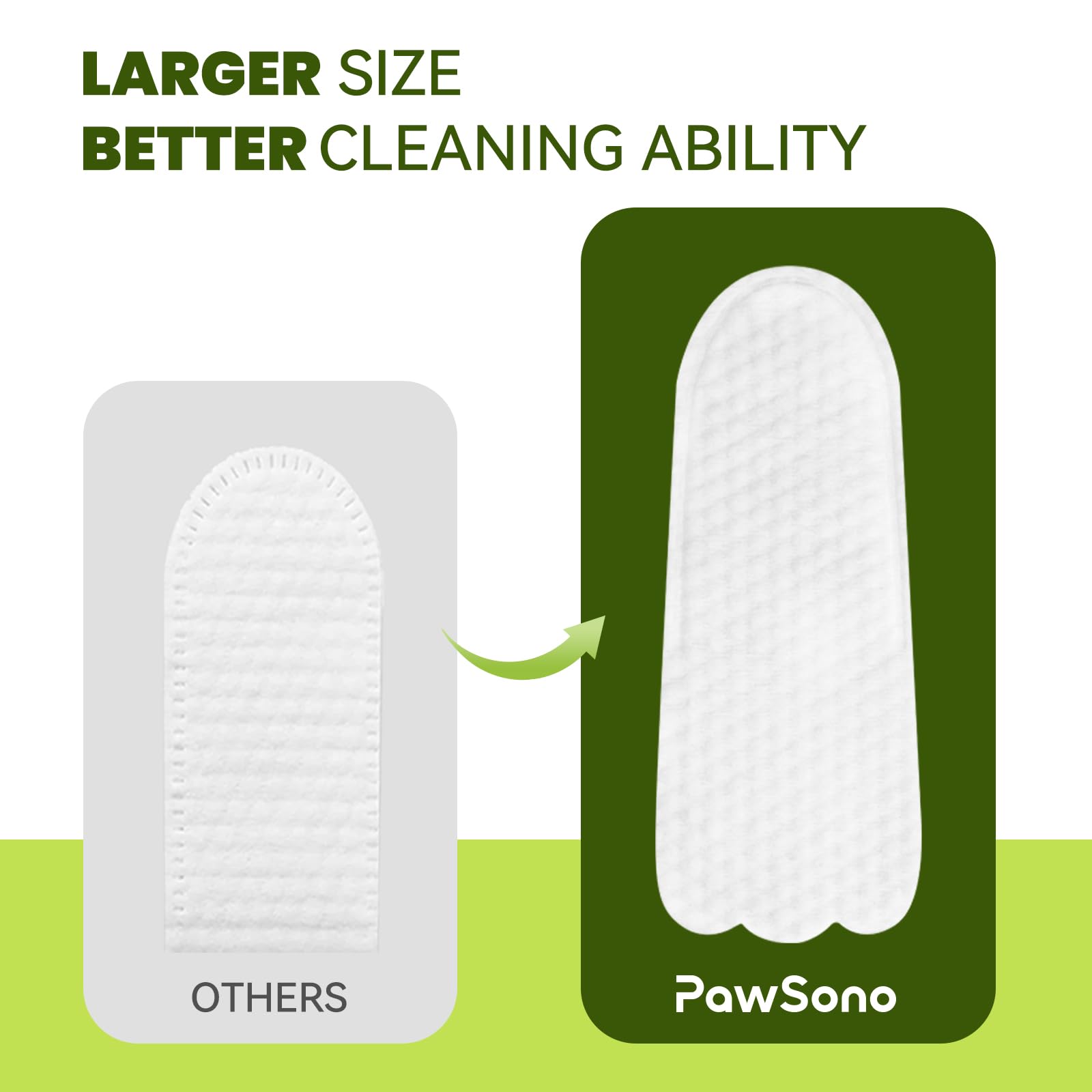 - 【Extra Larger & Thicker】PawSono cat ear wipes custom-sized for the US market. Our pet ear wipes new size eliminates the need to worry about fingers being too thick to wear them, and eliminates the concern about dog ear wipes finger slipping off.