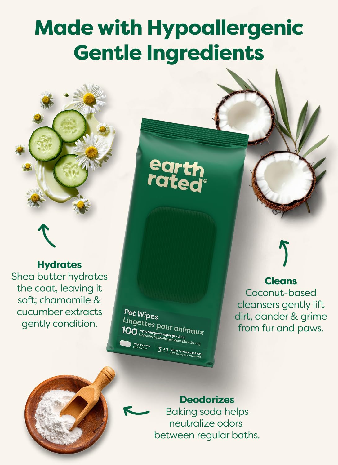 - GENTLE INGREDIENTS: These pet wipes contain high-quality ingredients like soothing aloe, shea butter, chamomile, and cucumber. They are perfect for cleaning your dog after walks, hikes, or in between baths