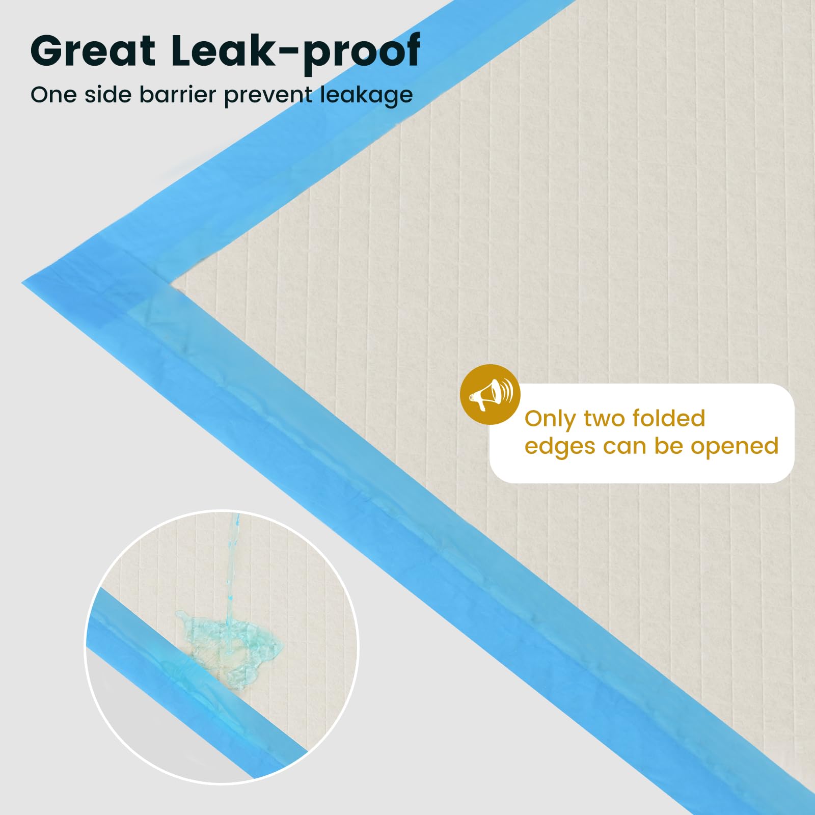 - 【Double Leak-proof】These puppy pads are designed with extra two-sided barriers on the edge and an extended border, containing liquid and reducing side leakage, to provide double protection.