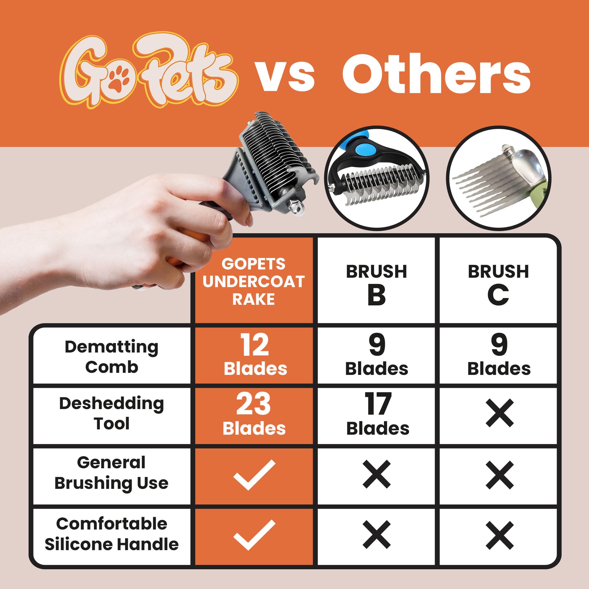 - RELIABLE QUALITY FROM GOPETS – Made with rust-resistant stainless steel blades, this durable grooming tool functions as a dog brush for shedding, dog grooming brush, cat grooming brush, dematting comb for dogs and cats, and undercoat rake for dogs. It delivers long-lasting performance for shedding control, mat removal, and coat detangling, supporting healthier, softer fur and maintaining your pet’s coat health and cleanliness.