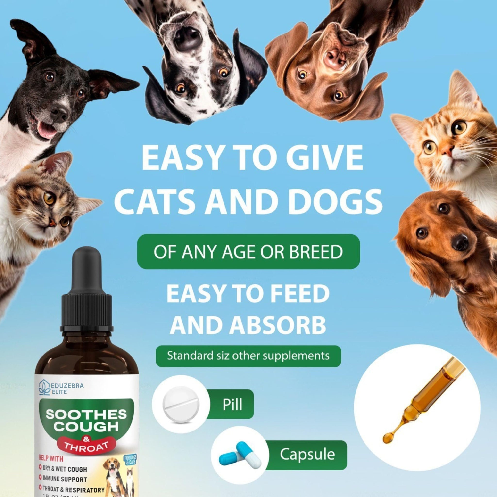 • Targets Various Cough Types: Designed to address dry, wet, or barky coughs in pets, providing relief for a range of respiratory issues.