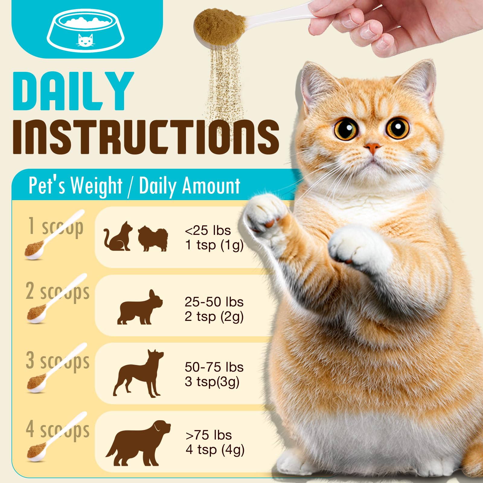 - Directions - 1 Heaping Scoop Per 25lbs. Double The Dose for The First Ten Days as A “Loading Phase” to Increase Initial Absorption.