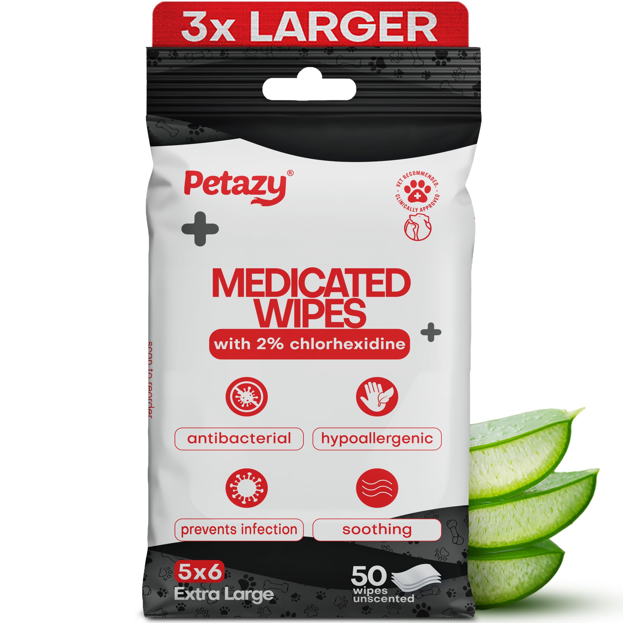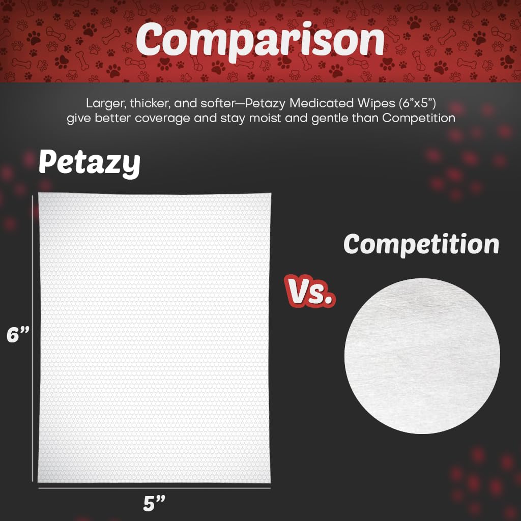 - XL 5X6" MEDICATED PET WIPES – Over 4× larger than typical 2–3" pads; one wipe covers more surface, saving time, money, and stress while keeping pets comfortable.