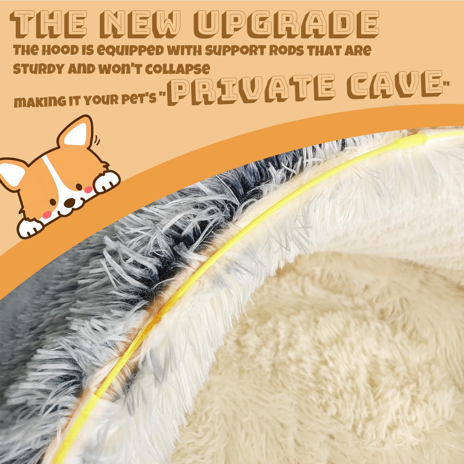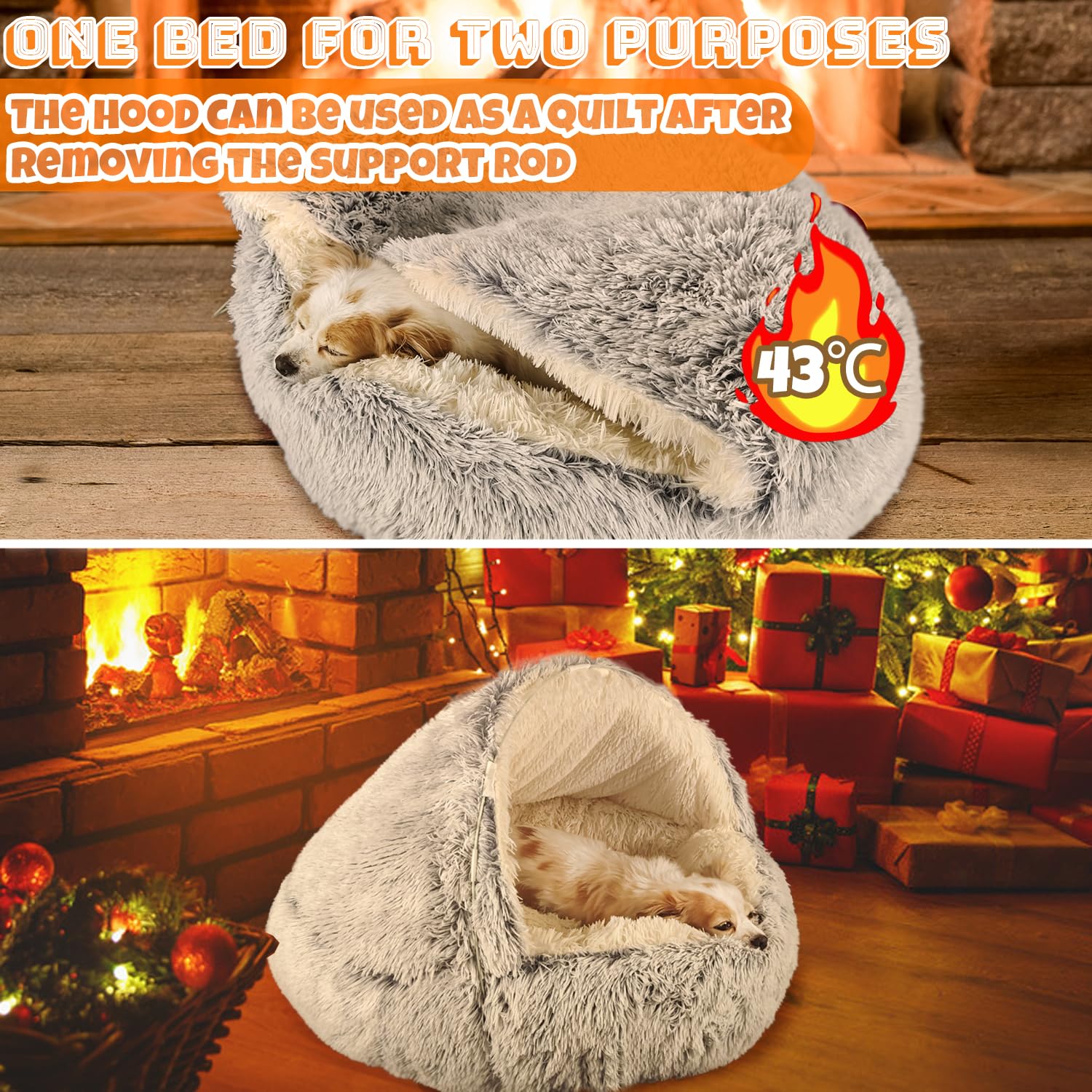- ➤New upgrade--2-in-l cave dog bed: We pay attention to the health and safety of pets and are committed to creating a warm home for pets. The newly upgraded plush dog bed is equipped with support rods. Insert the support rods on the cover for use Makes a cave bed, very strong and won't collapse. Take out the support rod on the dog bed cover, the dog can rest and nap on the cover or lie in the cave, and the warm cover like a blanket covers the pet. The kennel is convenient for use in various occasions, indoors and outdoors.