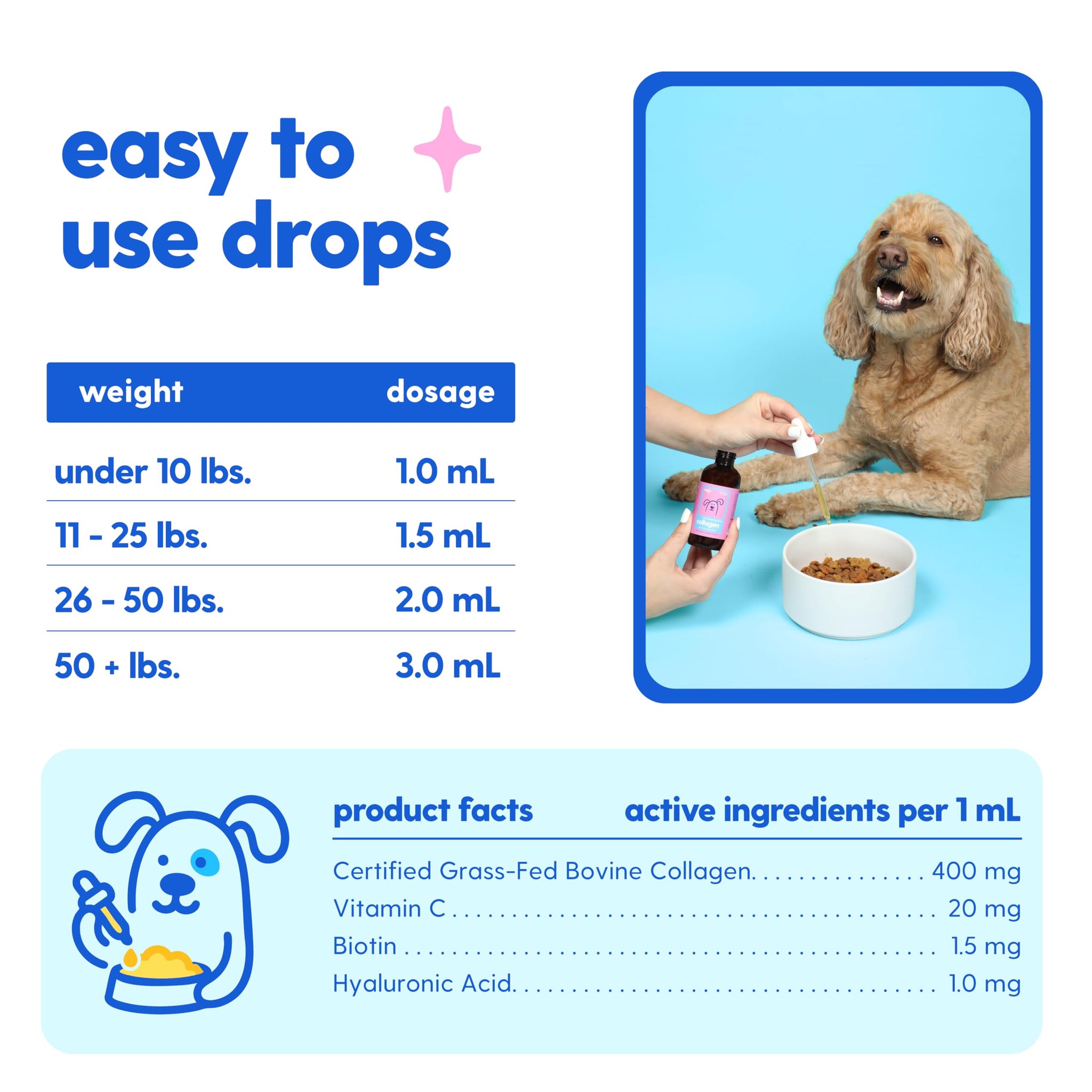 - ๐ถ Shiny, Bright Coat: Say goodbye to dull and lackluster fur! Our liquid collagen supplement helps enhance your pet's coat, making it shinier and brighter.