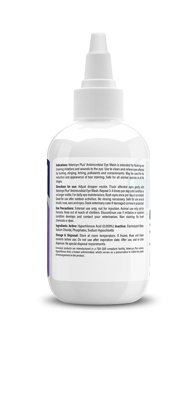 - SOOTHE PET'S IRRITATED EYES: Vetericyn Plus Eye Wash works to effectively flush the pet's eye and provide relief from symptoms of pink eye and other eye irritations