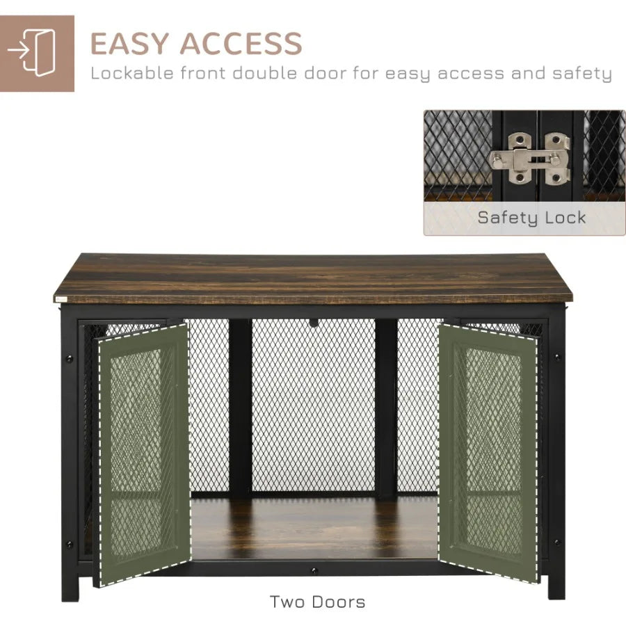 PawHut HeavyDuty Dog Crate Furniture Large Spacious Interior for Medium Dogs Brown Black