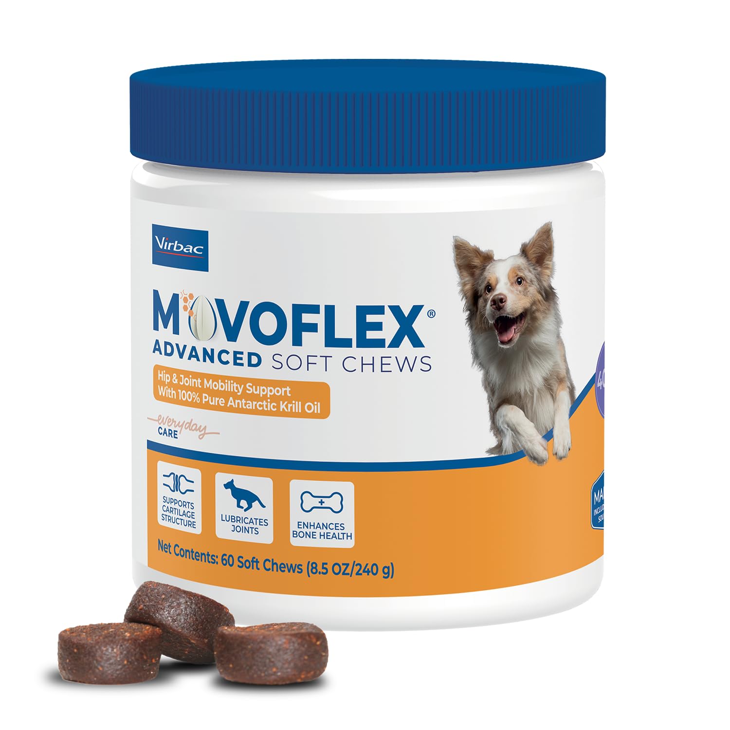 Advanced Soft Chews Hip and Joint Support Supplement for Medium Dogs - Movoflex 60 Count by Virbac