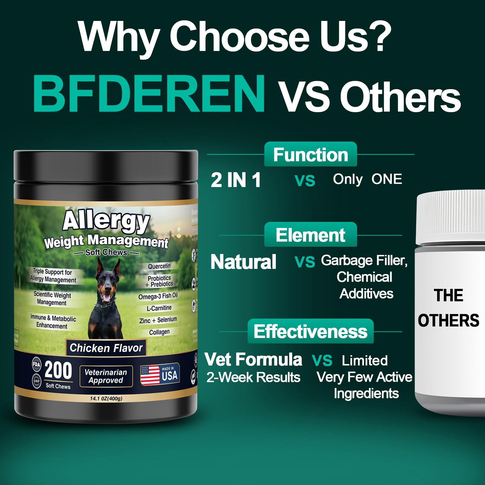 - [200 Pieces, Eco-Friendly Packaging]Chicken flavor of anti allergy chews for dogs is mouth-watering,Dog Allergy Support & Weight Management become irresistible enjoyment for your itchy dog relief.200 Pieces dog itch relief can be used as daily supplements or rewards,long-term allergy relief for dogs itching,Affordable&Effective.100% Recyclable Packaging,dog anti itch while contributing to greener planet.Allergy and itch relief for dogs,professionally support your dog's natural health