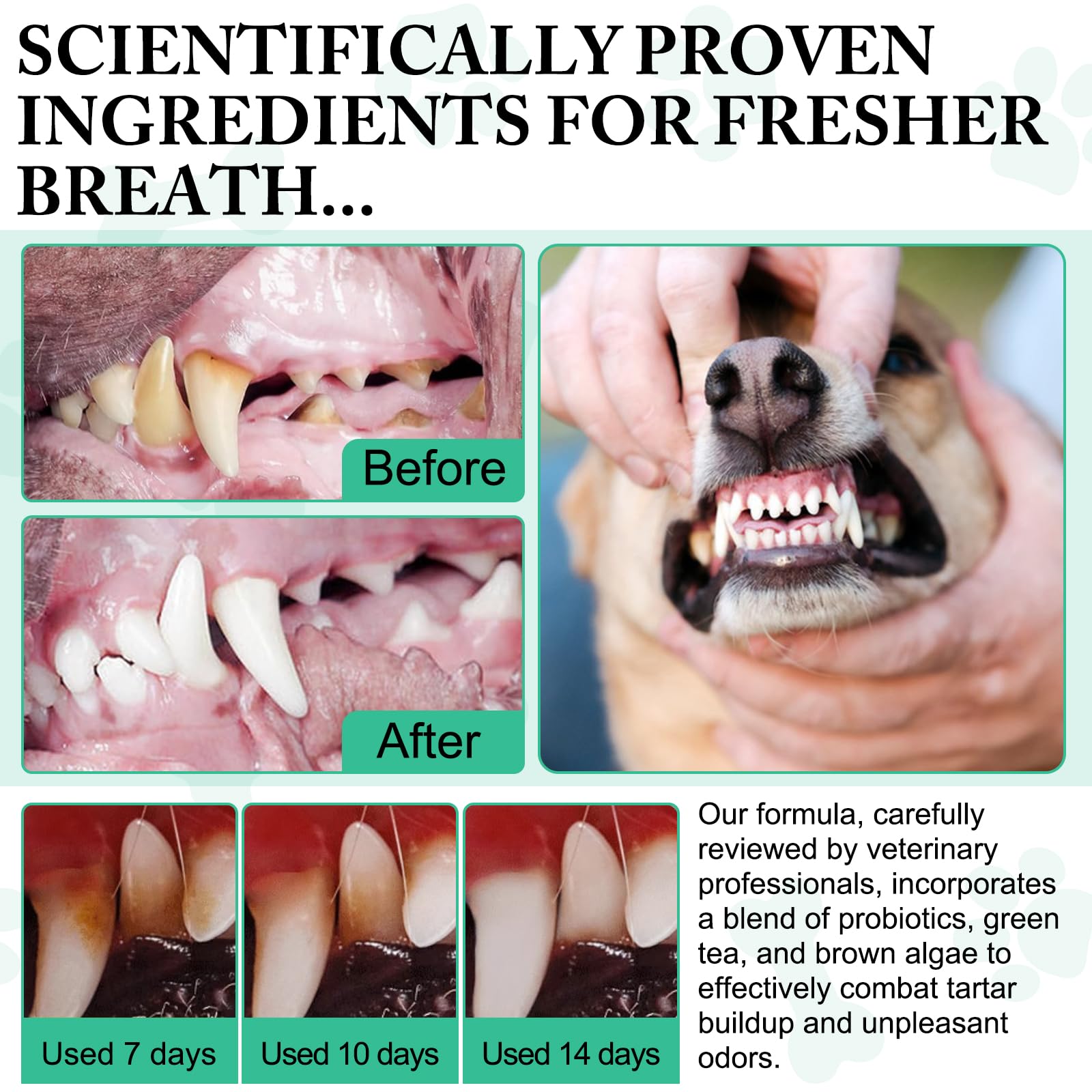 - Easy To Use:Simply add the powder to your dog or cat's food for fresher breath and healthy gums. A useful addition to your dog's daily oral care routine and great for dogs who are less inclined to brush their teeth