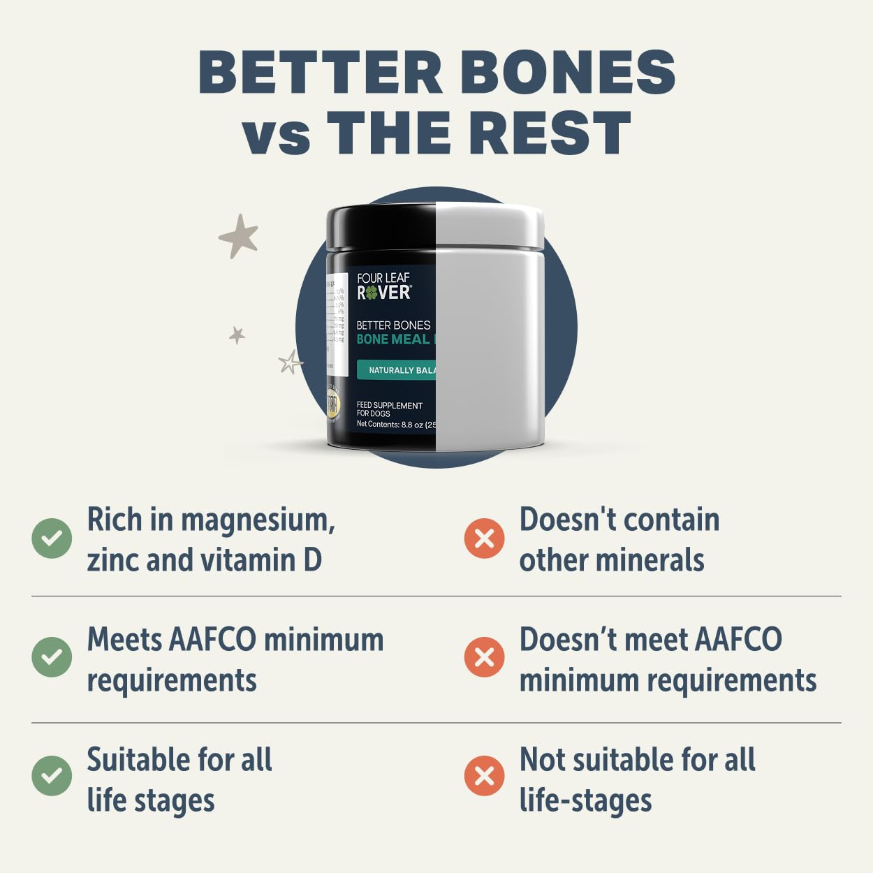 - SATISFACTION GUARANTEED: If you're not thrilled with the premium quality of Four Leaf Rover Better Bones, we'll refund your purchase. No hassles. No questions. Guaranteed.