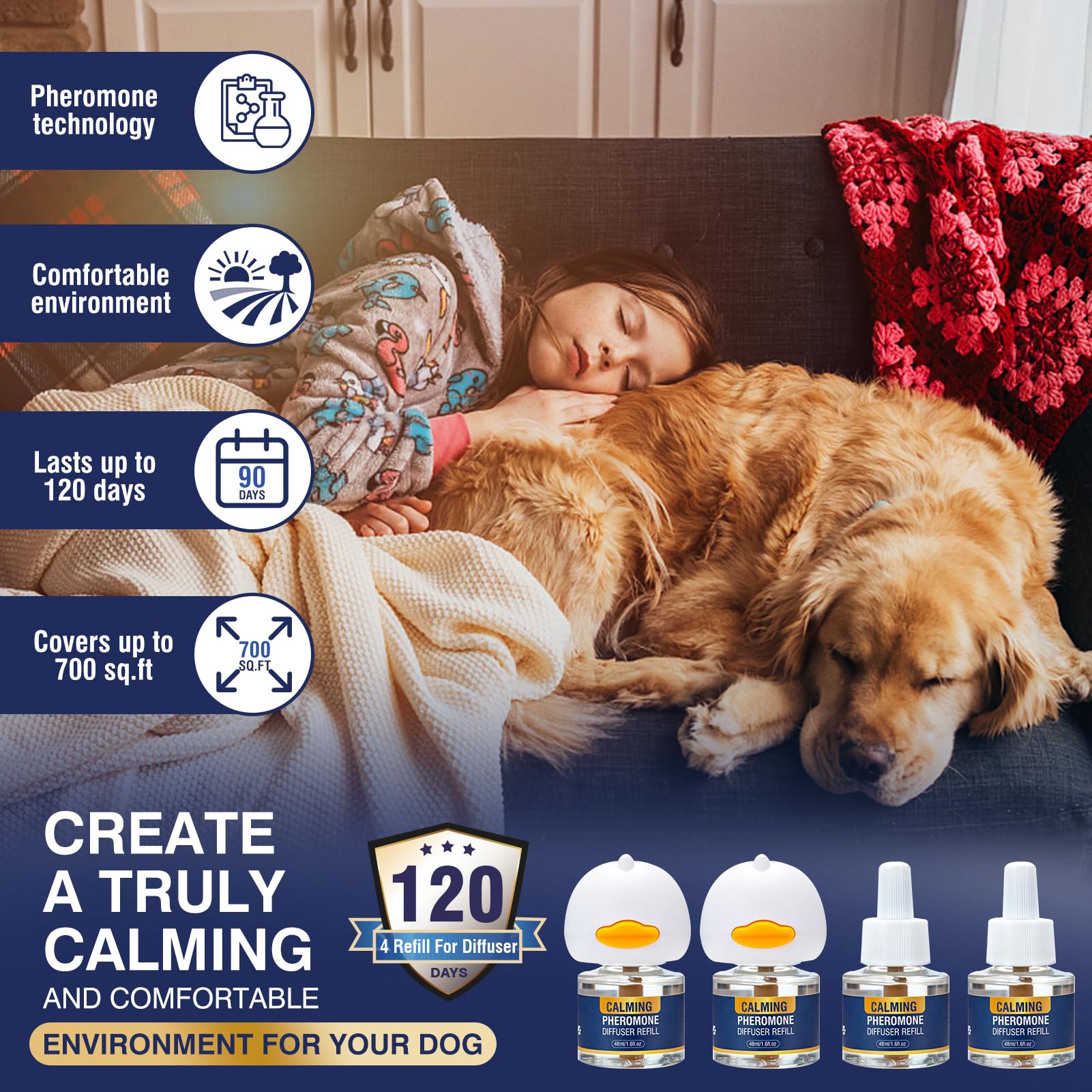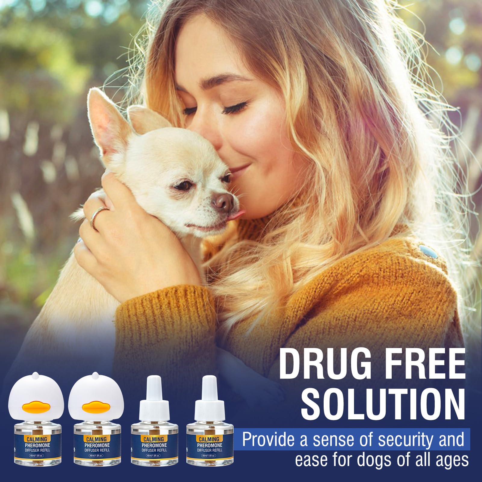 - 【6 IN 1 Diffuser Kit- Veterinary Recommendation】The diffuser refill kit includes 2 diffuser head, 4 x 48ml refills, enough to keep your home filled with tranquility. Broad, gentle and long-lasting, calming plug is ideal for helping dogs reduce stress and is personally recommended by veterinarians. Dog calming diffuser plug in is designed to provide dog care for your dog, help your dog get rid of anxiety, calming dog diffuser brings a deeper sense of calm