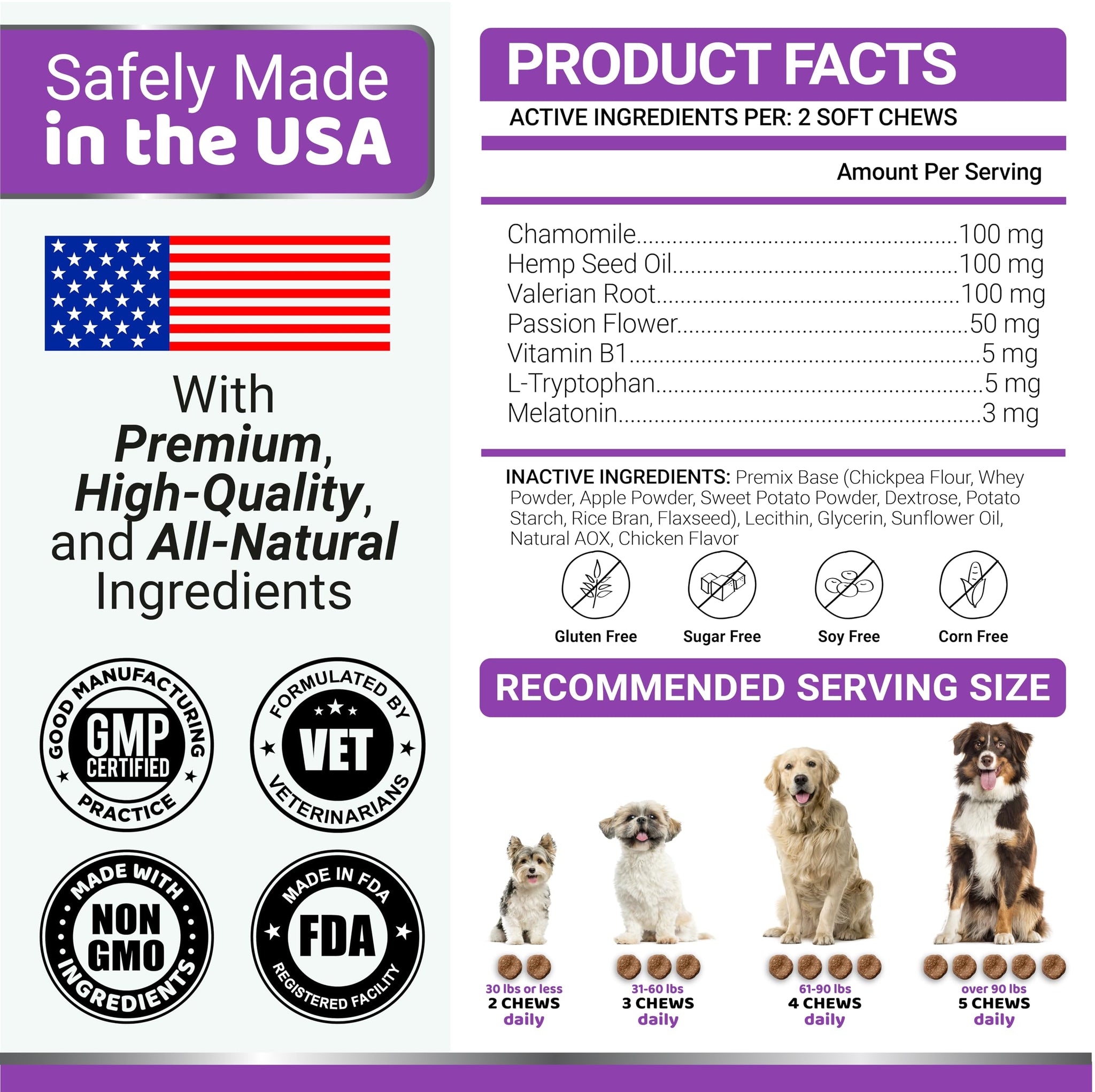 • Veterinarian Formulated & USA Made: Trust in the premium quality of our melatonin for dogs to sleep, which are formulated by veterinarians and manufactured in the USA within an FDA-registered facility