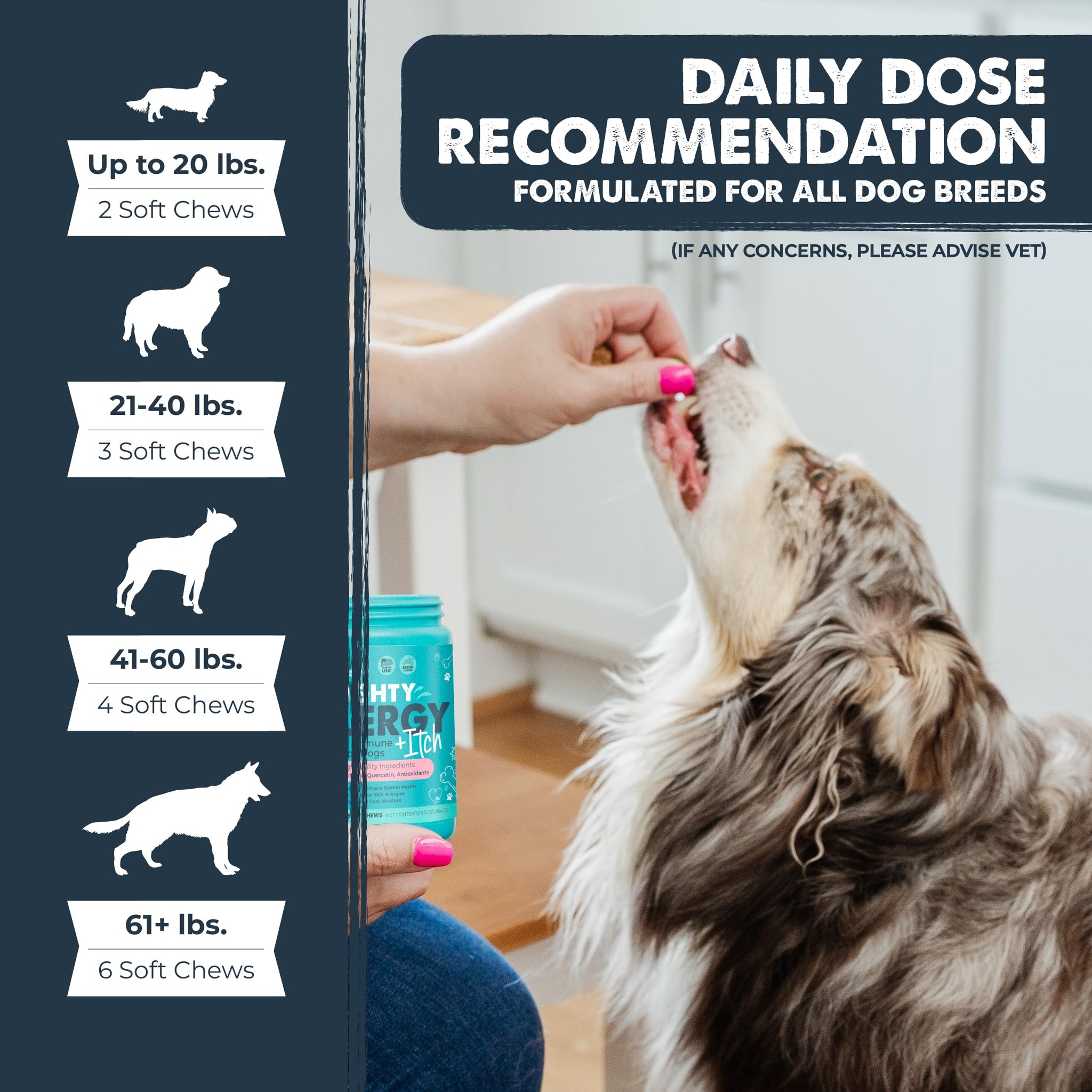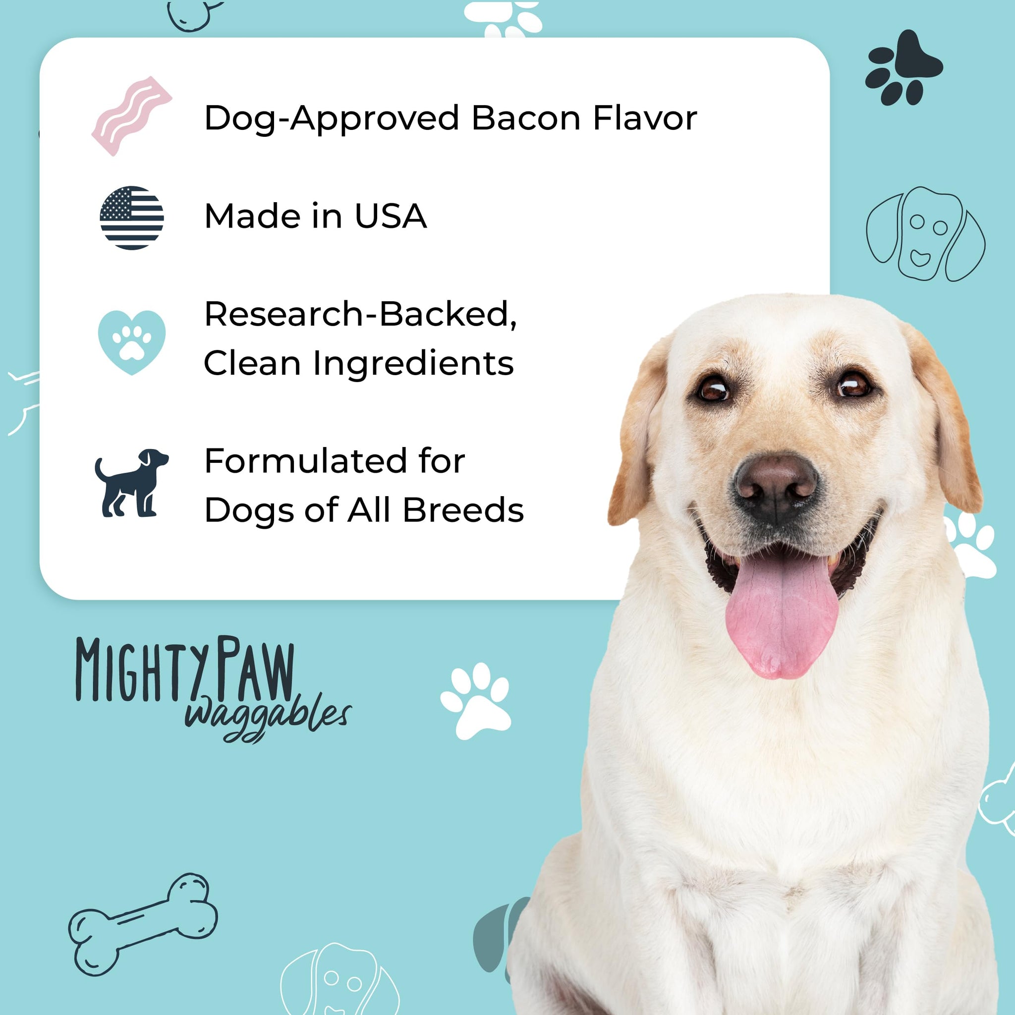 - Bacon Flavored Boost: We know how important taste is for your furry friend, which is why Mighty Immune + Itch comes in a delicious bacon flavor. Say goodbye to the struggle of giving your dog supplements—your pup will gobble it up happily!