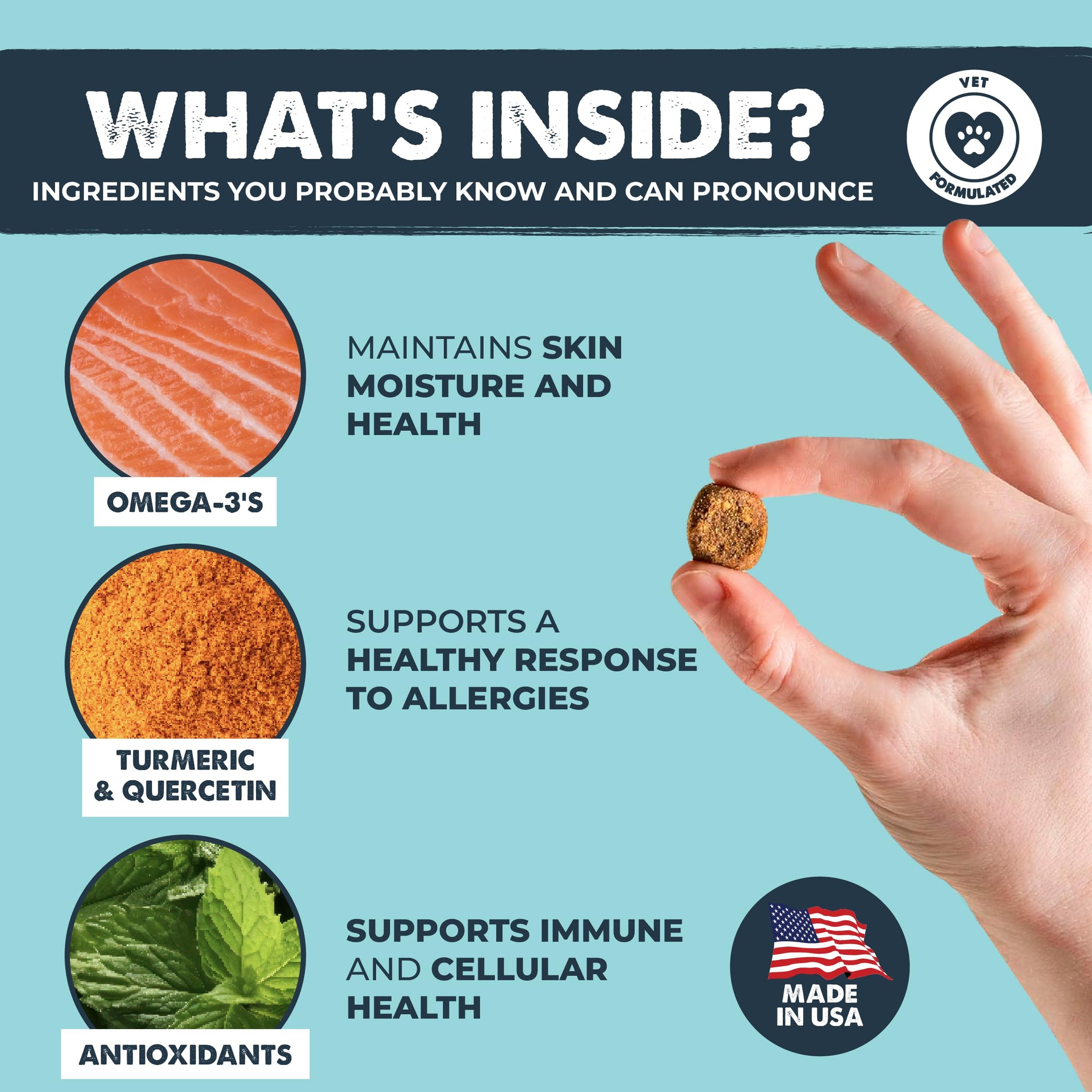 - Soothe the Itch: Our immune and allergy supplement unleashes the dynamic power of Omega-3's, Quercetin, and Turmeric to promote immune system health and support your pups season allergy response.
