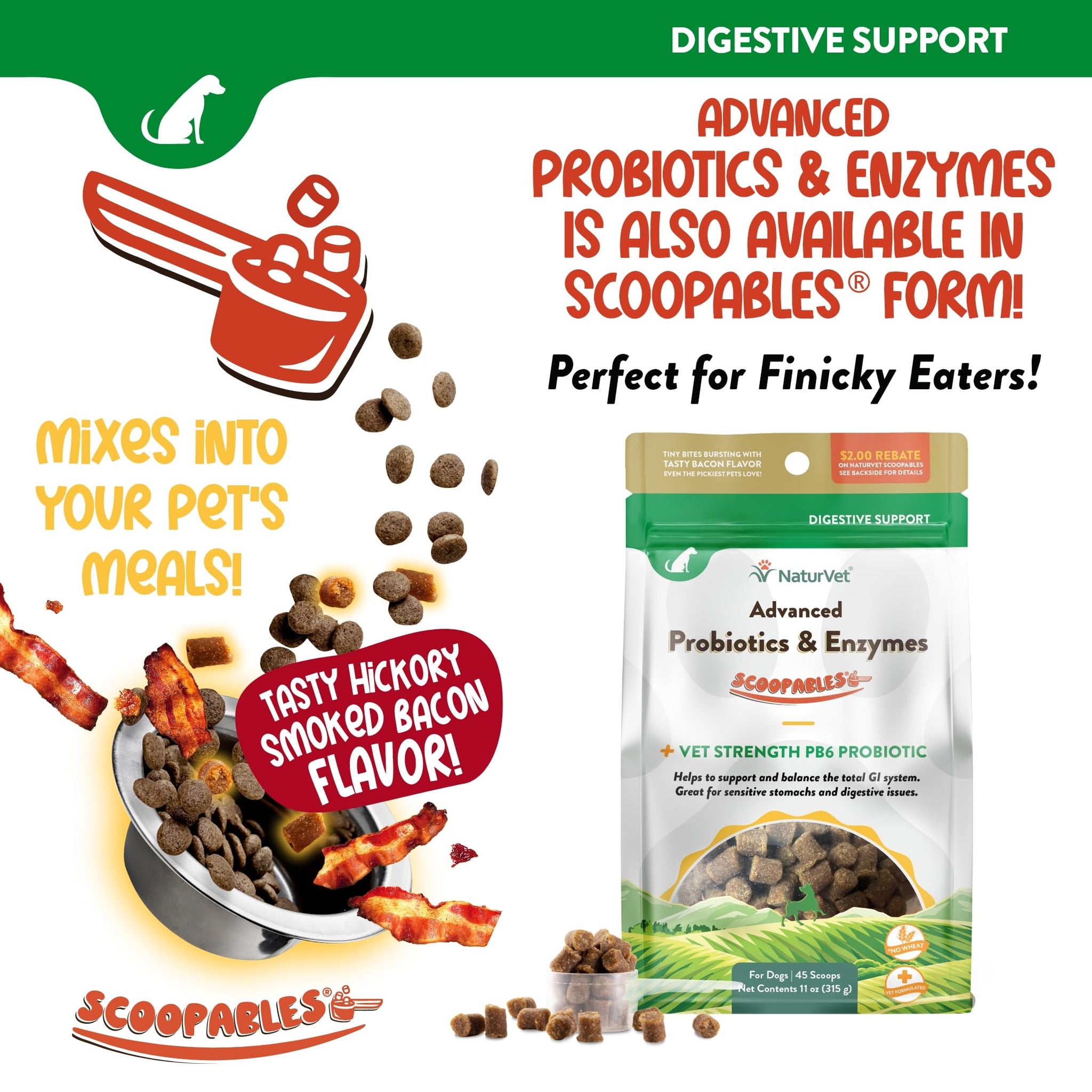 - Enzymes and Probiotics for Dogs: Our probiotic soft chews for dogs are formulated by trusted vets to help your furry friends over the age of 6 weeks with sensitive stomachs, diet changes, and digestive issues