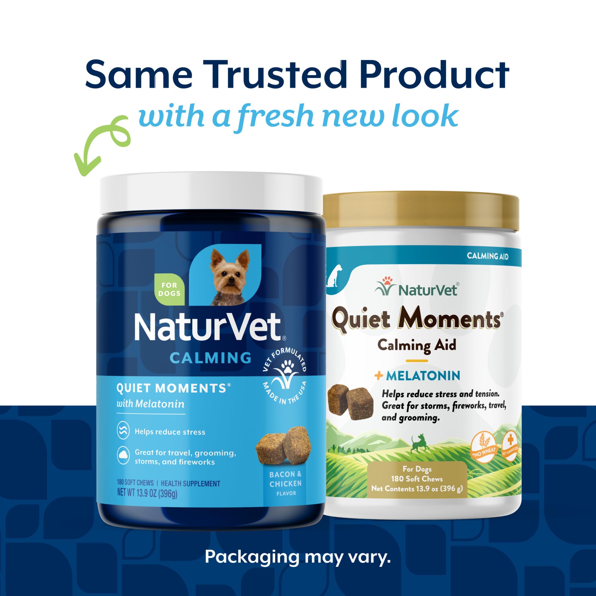NaturVet Quiet Moments Calming Dog Supplement, Dog Soft Chews with Melatonin to Help Reduce Stress from Storms, the Vet, Fireworks, and Travel, Bacon and Chicken Flavored Pet Supplement, 180 Count Jar