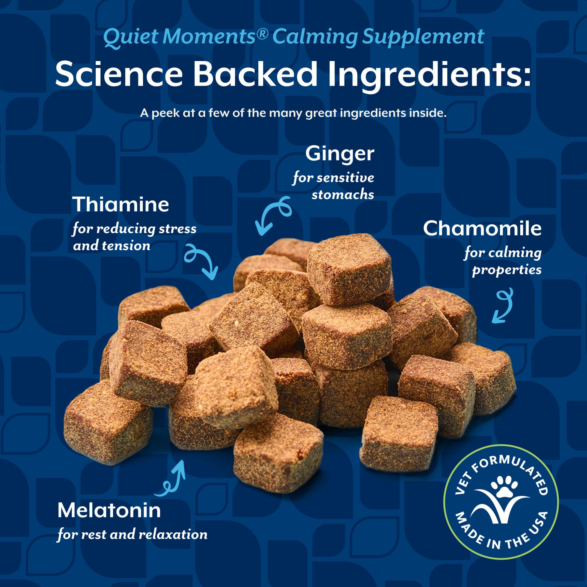 - Crafted with Calming Botanicals: Our unique blend of Thiamine and L‑Tryptophan, Ginger, Chamomile, and Melatonin is designed to help melt away stress for your dogs, support sensitive stomachs, and promote peaceful rest