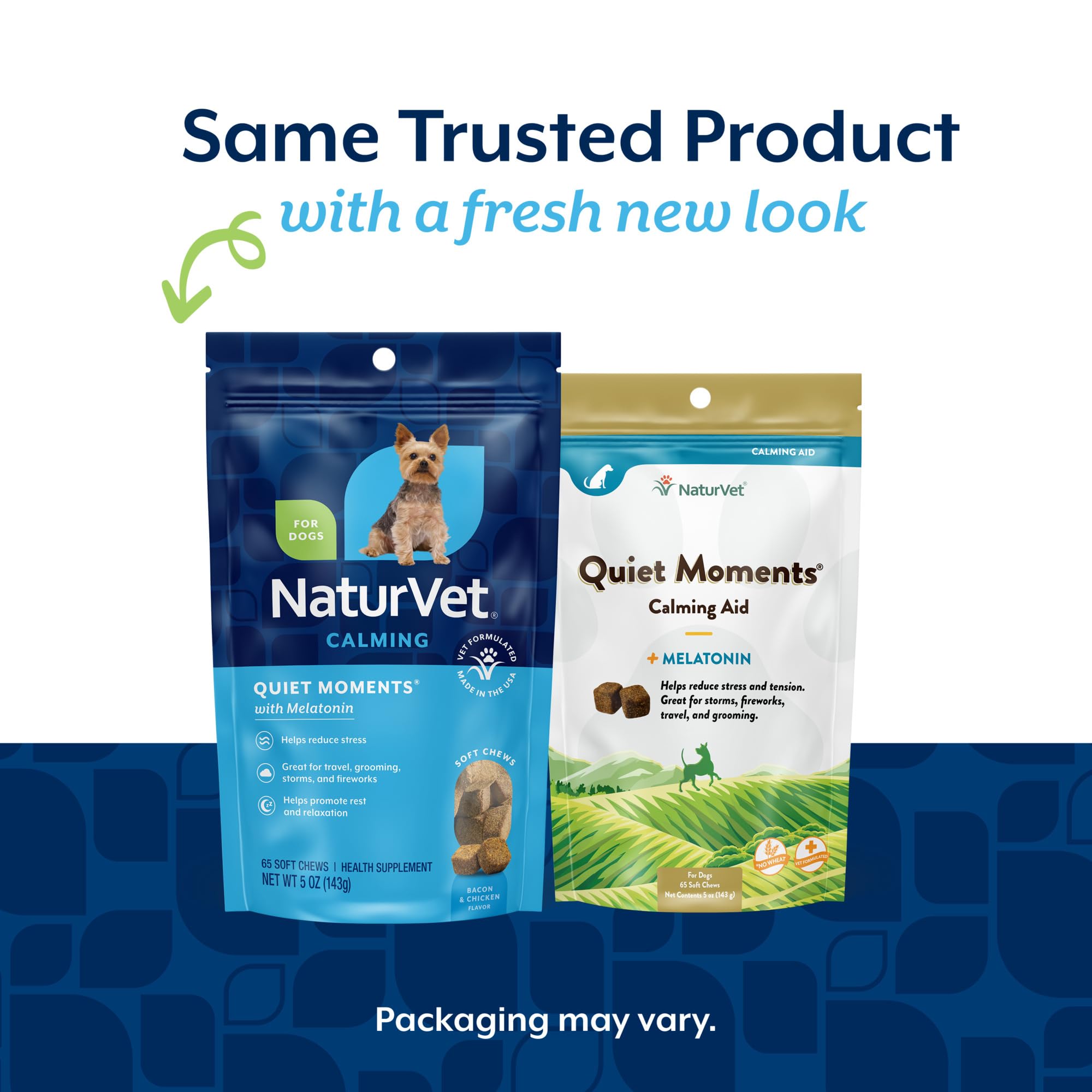 • Dog Stress Help: Whether you’re taking your rambunctious pup to the vet, your senior dog doesn’t travel well, or you have a canine who gets startled by fireworks and storms, our soft chew supplements for dogs can help reduce stress and tension