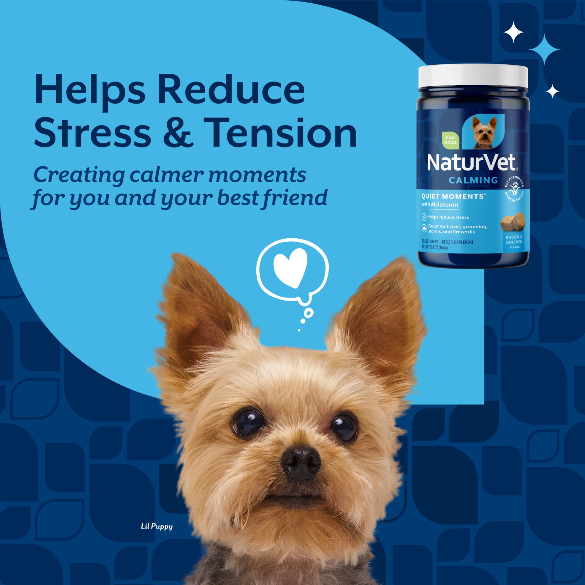 - Dog Stress Help: Whether you’re taking your rambunctious pup to the vet, your senior dog doesn’t travel well, or you have a canine who gets startled by fireworks and storms, our soft chew supplements for dogs can help reduce stress and tension