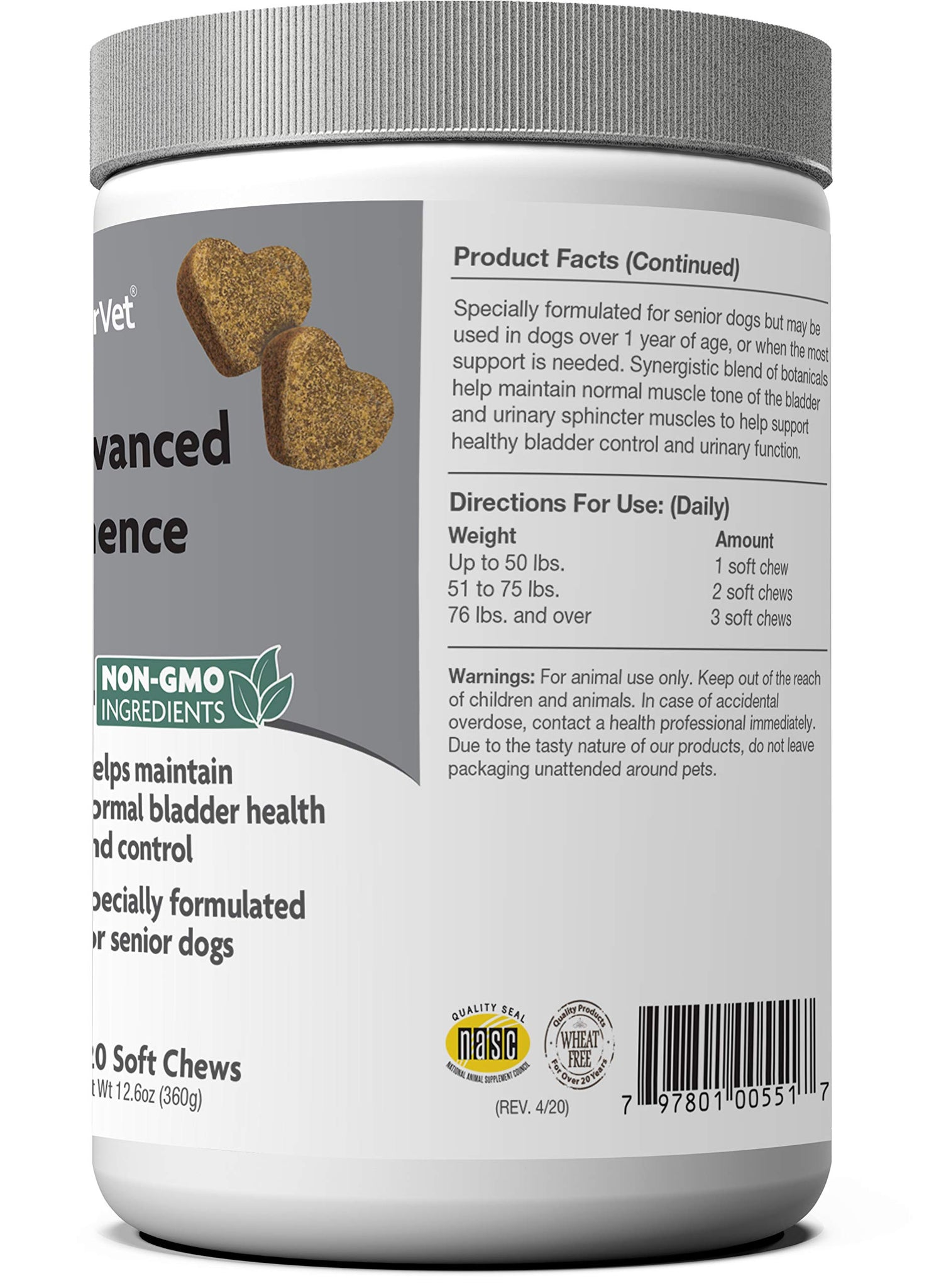 - HELP BOOST YOUR DOG’S IMMUNE SYSTEM: This dog supplement for bladder control is available in soft chews in a 120-count re-sealable jar. The nutrients work to help boost your dog’s immune system while supporting his overall health.