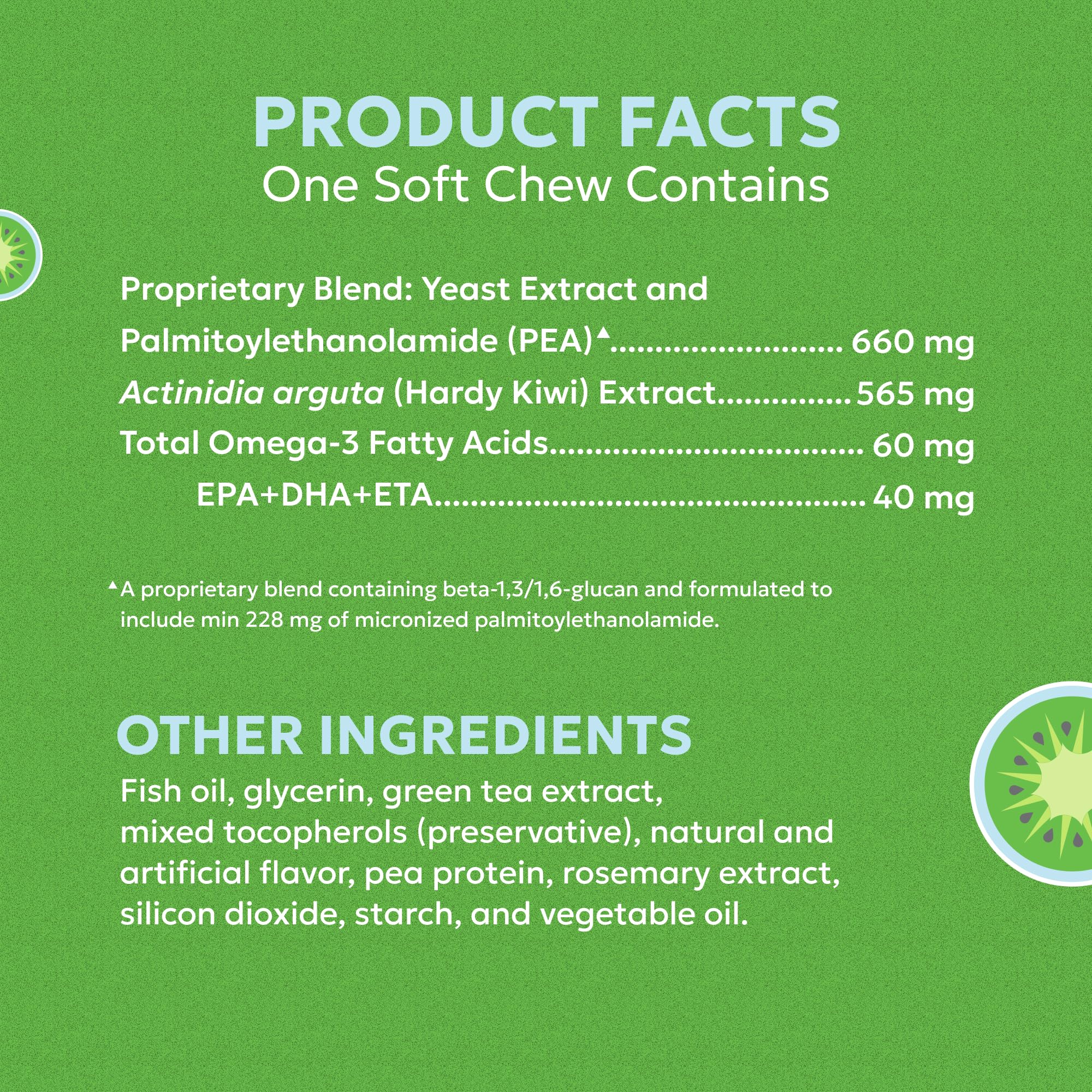 Details: Dermaquin soft chews for dogs and cats are a skin support supplement that helps support a healthy response to allergens. It helps fortify and support the skin’s natural barrier, making it more difficult for allergens to cause an allergic response. The unique ingredients found in Dermaquin Skin Support Supplement work to support multiple pathways within the skin providing a comprehensive approach to skin health. Hardy kiwi has been used in traditional East Asian medicine to support a healthy response to allergens, beta-glucan helps support a healthy immune system within the skin, and omega-3s play a crucial role in the composition of a healthy skin barrier. It is brought to you by Nutramax Laboratories Veterinary Sciences, Inc., the #1 Veterinarian Recommended Supplement Company.* Nutramax has been a leader in pet health for over 30 years, providing supplements to support joint health, digestive health, skin and coat health, calming, and more. *Source: Survey conducted among small animal veterinarians who recommended animal supplements.