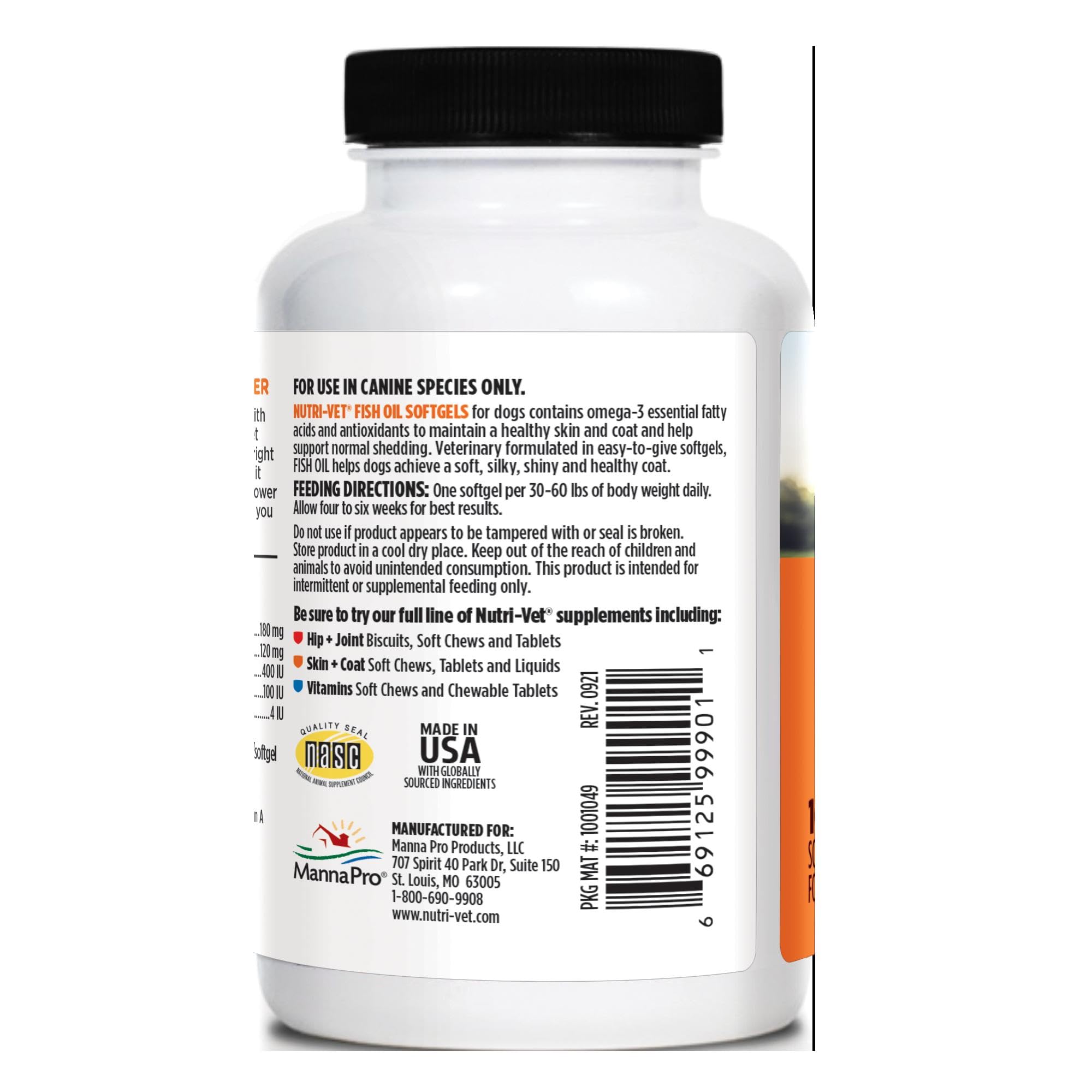 Nutri-Vet Fish Oil Supplement for Dogs, Omega 3, Fish Oil for Dogs, Pet Supplies, Pet Vitamins and Supplements, EPA DHA Formula, Puppy Vitamins, Shed Control, New Puppy Essentials, 100 Count