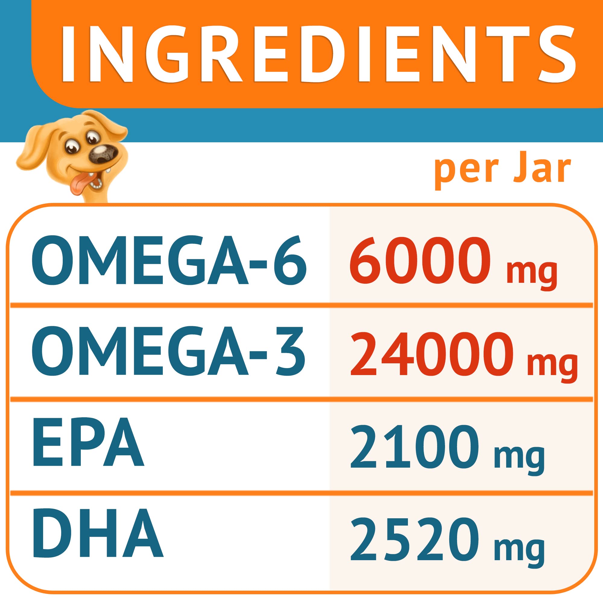 - Value Pack: This 180ct jar is the best natural treatment for your dog's health needs, unlike pills or tablets. It provides a 3-month supply of essential vitamins and omega benefits, suitable for puppies to senior dogs.
