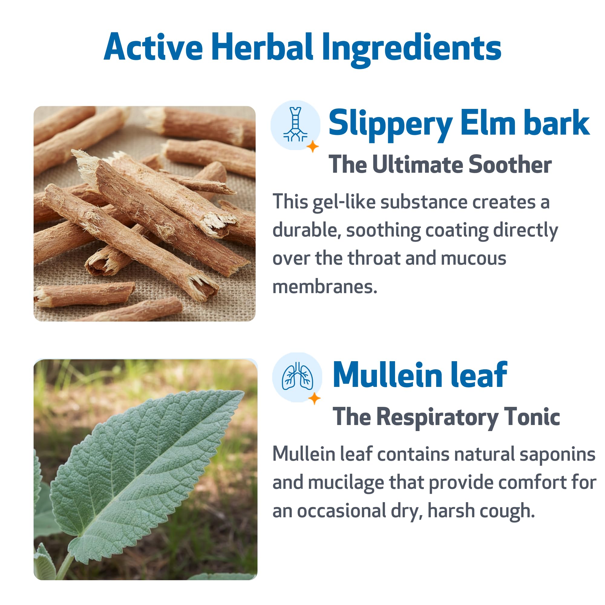 - ✅ SOOTHING. Our veterinarians have selected demulcent herbs known to soothe throat, trachea, and occasional cough. Formulated with Slippery Elm and Mullein leaf, rich in mucilage that helps settle pet cough and sore throat.
