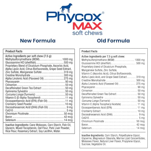 - Phycox soft chews dog supplement has gotten some updates and here is what you need to know: same active ingredients and dosage with new product appearance from updated inactive ingredients developed in consultation with a veterinary nutritionist