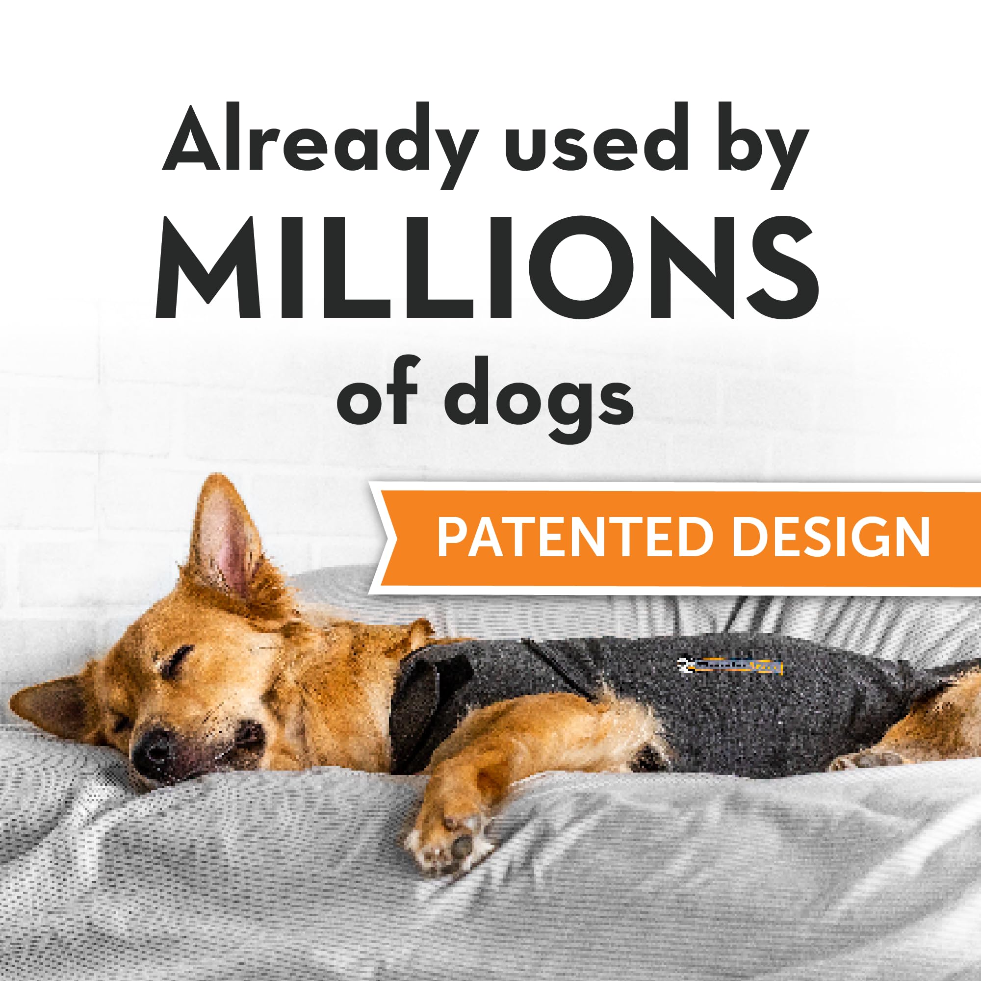 Details: ThunderShirt - the original and the best pressure wrap available. Like swaddling an infant, ThunderShirt' s PATENTED DESIGN calms all types of anxiety, fear, and over-excitement issues. Thundershirt is the EASIEST TO USE and adjust for just the right pressure to calm your dog. Already calming millions of dogs, Thundershirt has over an 80% success rate. Use for thunder, fireworks, separation anxiety, travel, vet visits, problem barking, reactivity, and much, much more. NO TRAINING REQUIRED. COMFORTABLE FOR YOUR DOG. Machine washable. Soft, breathable fabric..