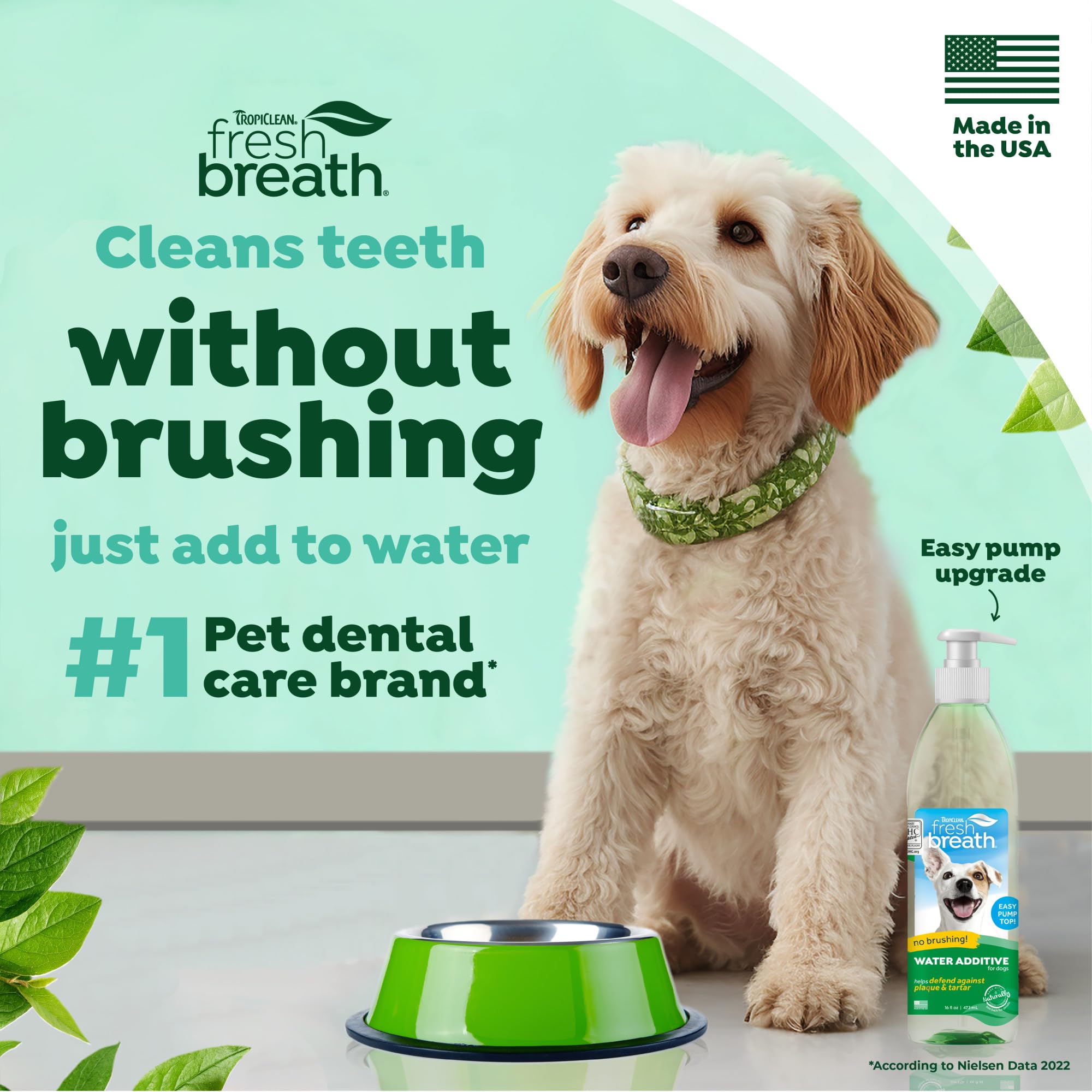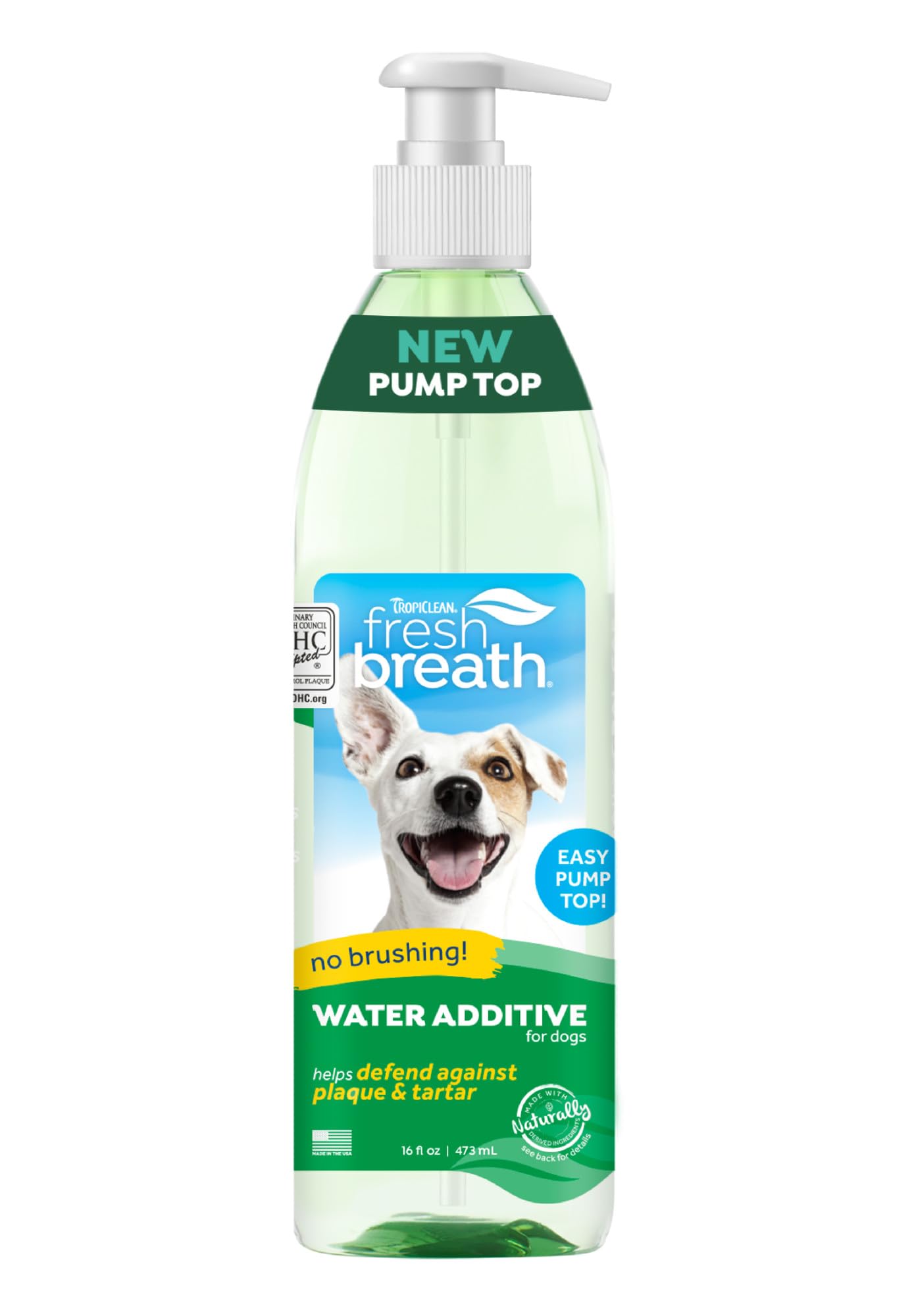 - NO BRUSHING — Breath freshener for dogs water is as easy as pump & stir! Add 1-3 pumps of water additive to 8 oz. of clean water, twice daily.