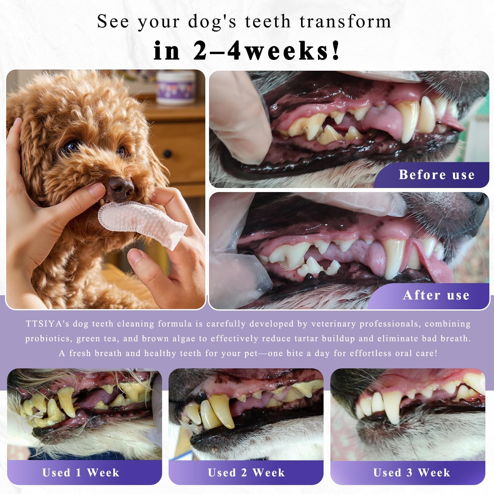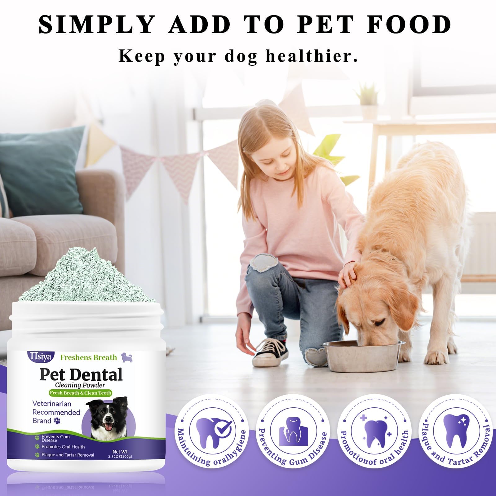 - PROMOTES HEALTHY TEETH & GUMS: TTsiya Dog Teeth Cleaning Powder is designed to support your pet's overall oral health. This natural green powder helps to reduce plaque and tartar buildup, promoting healthy teeth and gums while preventing the development of bad breath and dental disease.