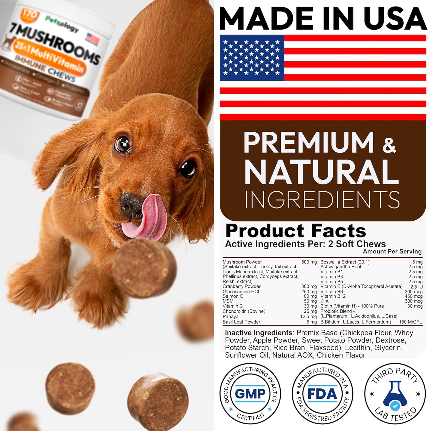 • Made in the USA in an FDA-Registered Facility: Our 25-in-1 Multivitamin dog immune support chews are made with strict quality standards to ensure safety, consistency, and trusted results.