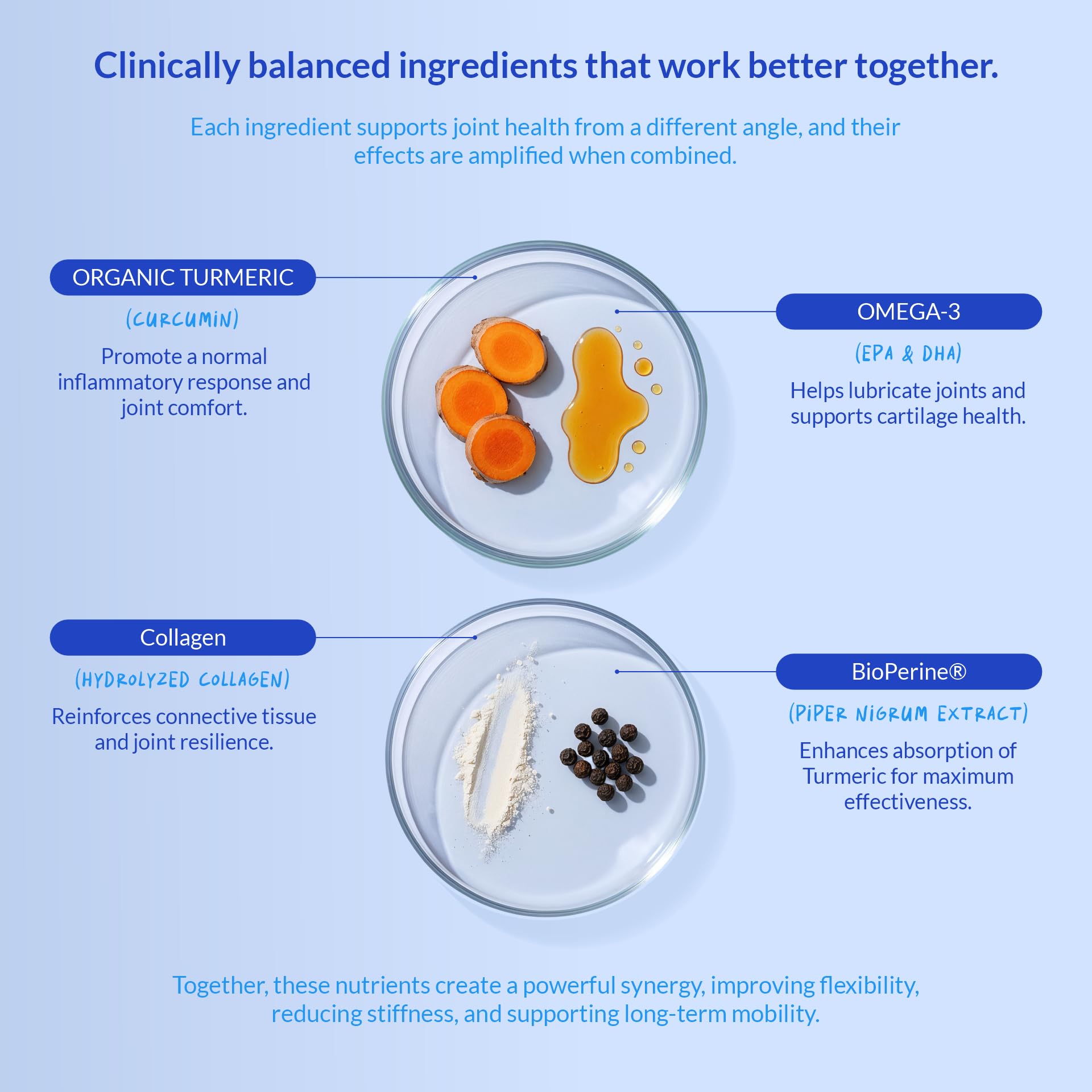 • Powerful Formula - Our safe and natural formula has collagen and fish oil promoting the maintenance of cartilage, helping diminish inflammation, and enhancing joint mobility, leading to improved comfort and agility.