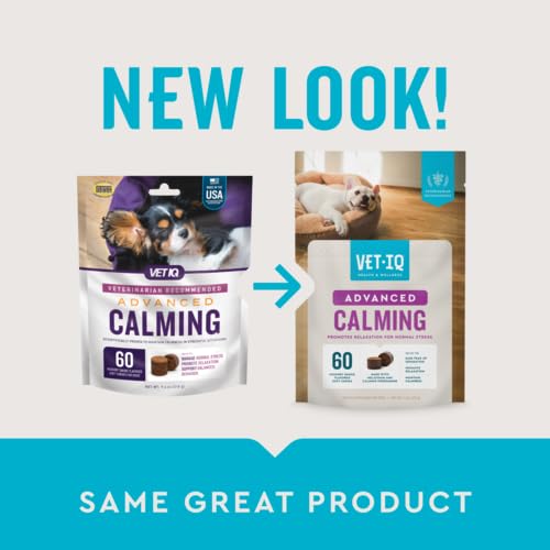 VetIQ Advanced Calming Support Supplement for Dogs, Dog Calming Chews - Anxiety Relief Treats Stress and Promote Relaxation, Made in The USA, 60 Count