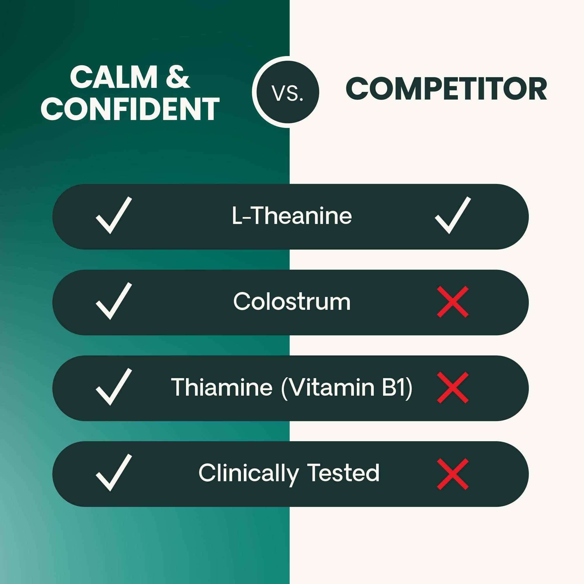 - Fast-Acting Anxiety Relief: Our vet-formulated calming dog treats deliver anxiety relief, composure, and a sense of calm quickly, with ingredients like colostrum, l-theanine and Vitamin B1. Give 30 minutes before car rides, grooming or vet visits, thunderstorms, or fireworks, or use daily for a calmer, more confident dog