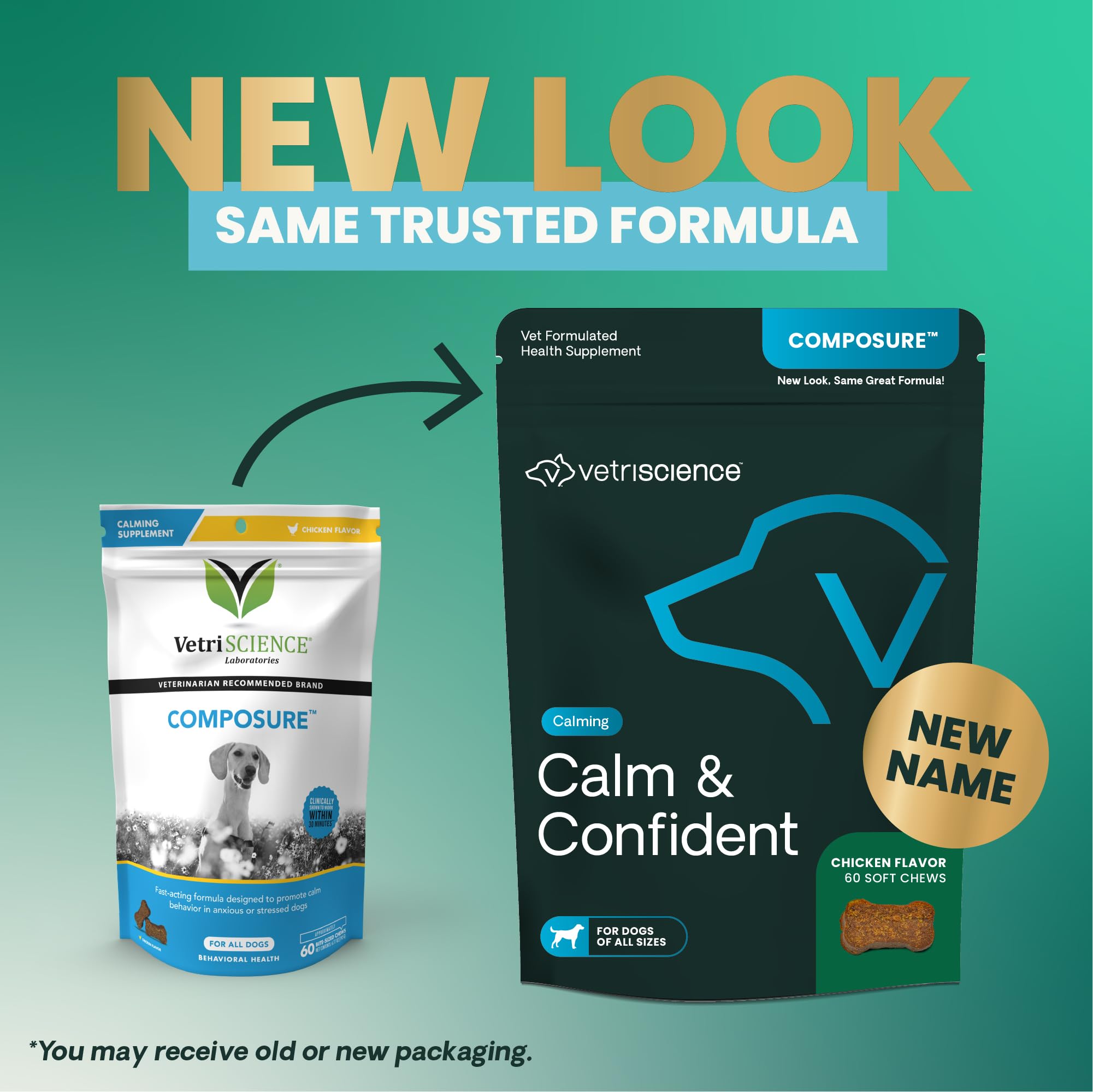 - Vets' #1 Calming Chew: As the only calming chews for dogs clinically tested to work within 30 minutes and last up to 4 hours, Calm & Confident (previously Composure) dog calming chews are the preferred choice in veterinary clinics across the country