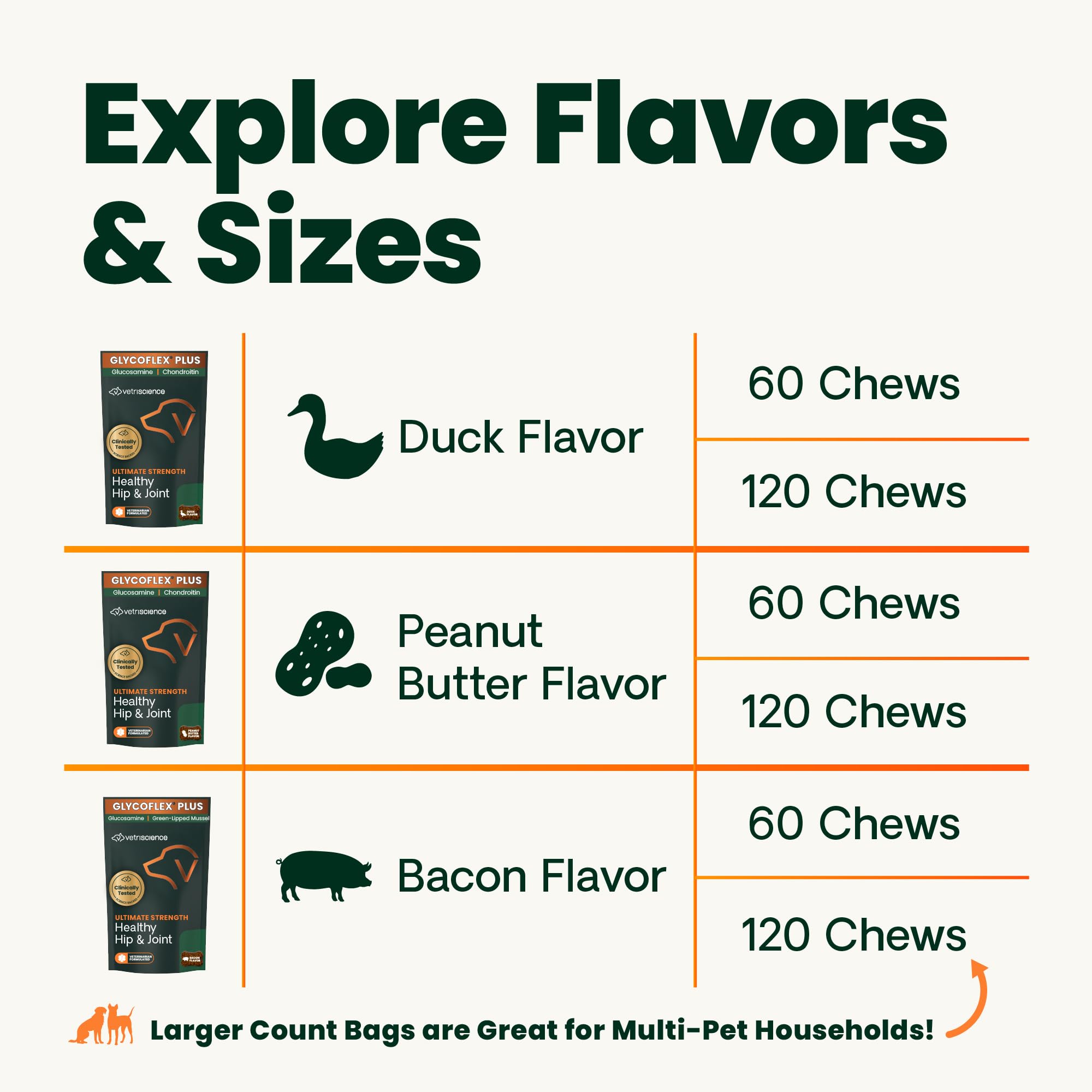 - Glucosamine for Dogs: Extra Strength Healthy Hip & Joint (previously GlycoFlex Stage 3) is our advanced-strength hip and joint supplement for dogs, with powerful levels of active ingredients that work together to help maintain mobility, lubricate joints, and support flexibility