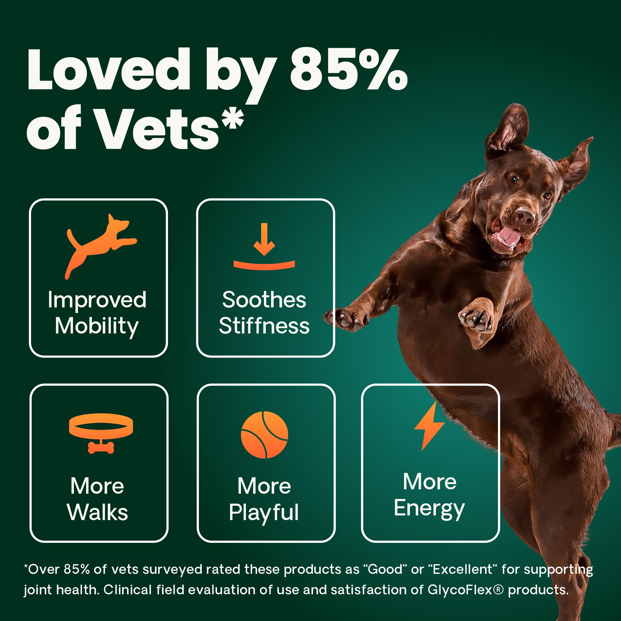 - VET FORMULATED & CLINICALLY TESTED DOG SUPPLEMENT: Extra Strength Hip & Joint , GlycoFlex 3 has been clinically proven to increase hind-leg strength in dogs by up to 41% in just 4 weeks. This maximum-strength formula is recommended by veterinarians for senior dogs, working breeds, large breeds, and pets with advanced joint needs, providing comprehensive mobility support backed by science.