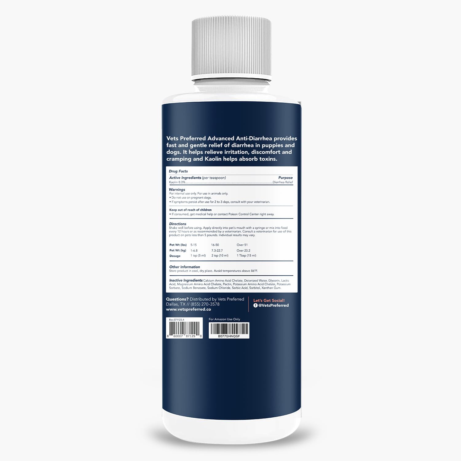 - ANTI-DIARRHEA FOR DOGS: The dog diarrhea medicine provides relief for dogs thanks to its potent pectin fiber and kaolin clay formula suitable for all dogs. The active ingredients help relieve diarrhea without leaving your dog dehydrated.
