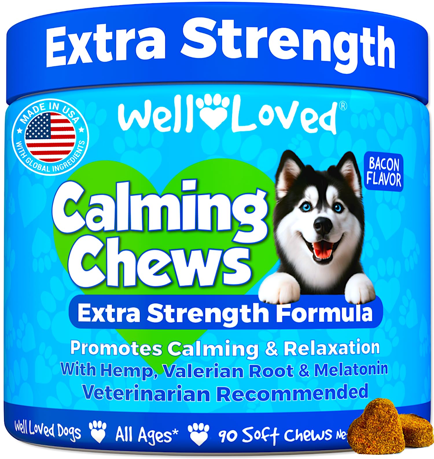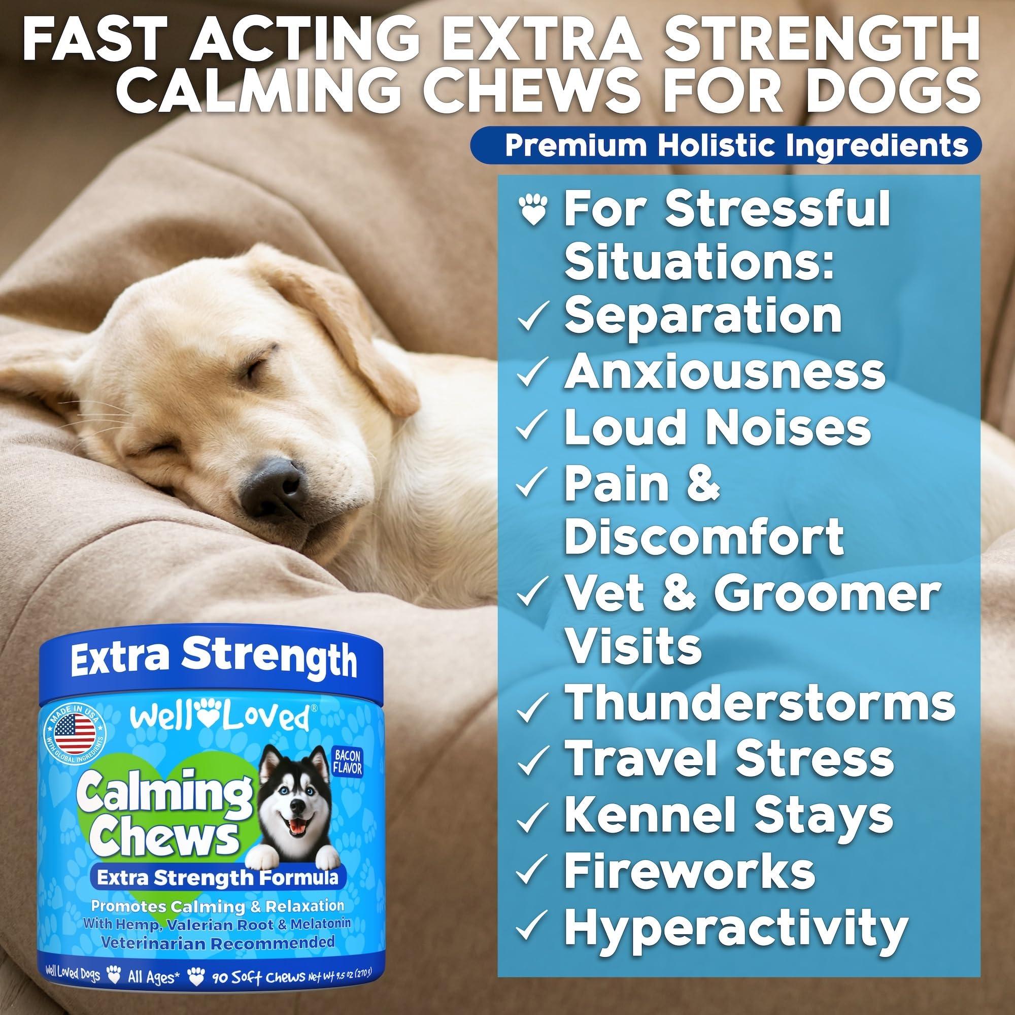 - Well Loved Extra Strength Calming Chews for Dogs are veterinarian recommended to help calm and provide relaxation for dogs. It's a natural, safe and effective calming aid that may help uncontrollable barking, shaking, scratching, howling, hyperactivity, separation, fireworks, travel, vet and groomer visits.