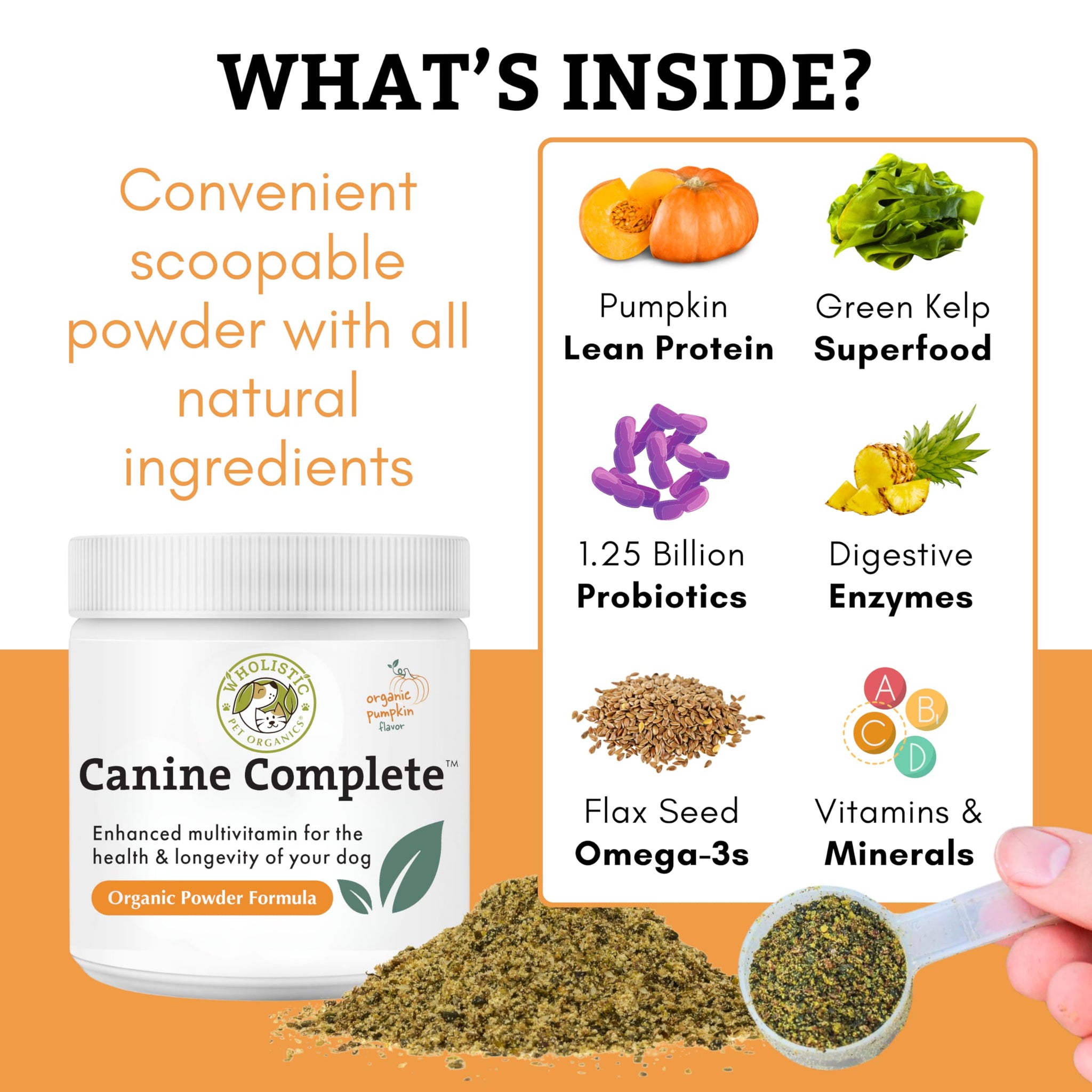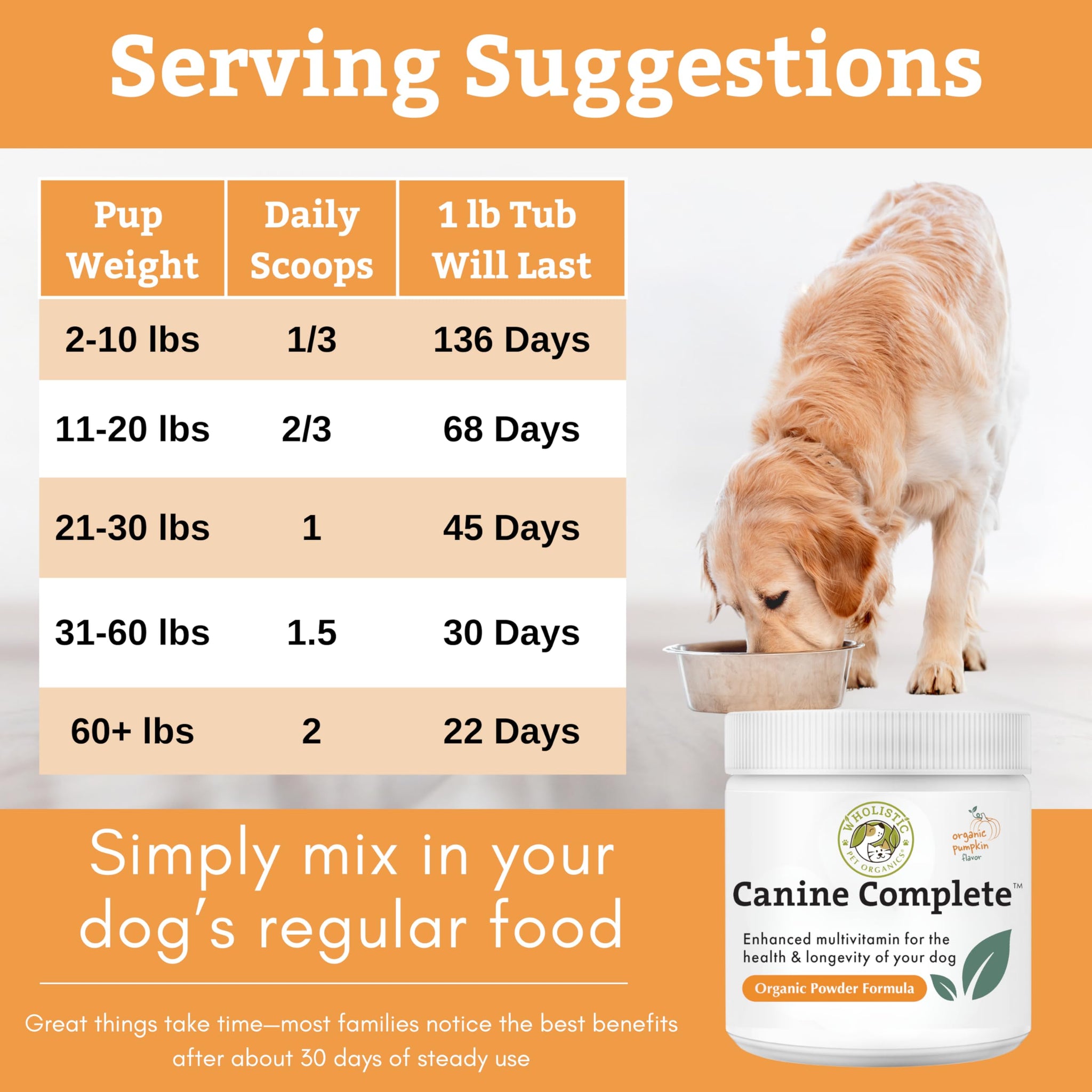 Wholistic Pet Organics Canine Complete - Dog Multivitamin Powder - 1 Lb - Daily Dog Vitamins and Supplements for Homemade Food - Immune System, Skin, Coat & Overall Health - All Breeds - 45 Scoops